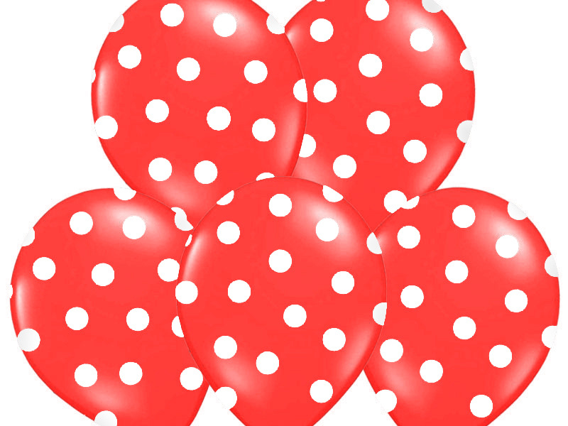 Nafukovací balónky v červené barvě s bílými puntíky jsou parádním doplňkem všech oslav a večírků.