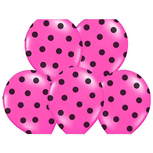 Nafukovací balónky v růžové barvě s černými puntíky jsou parádním doplňkem všech oslav a večírků.