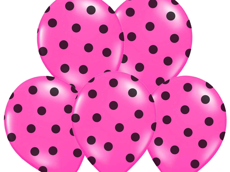 Nafukovací balónky v růžové barvě s černými puntíky jsou parádním doplňkem všech oslav a večírků.