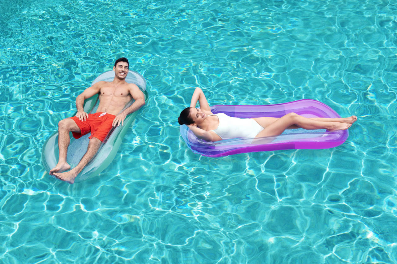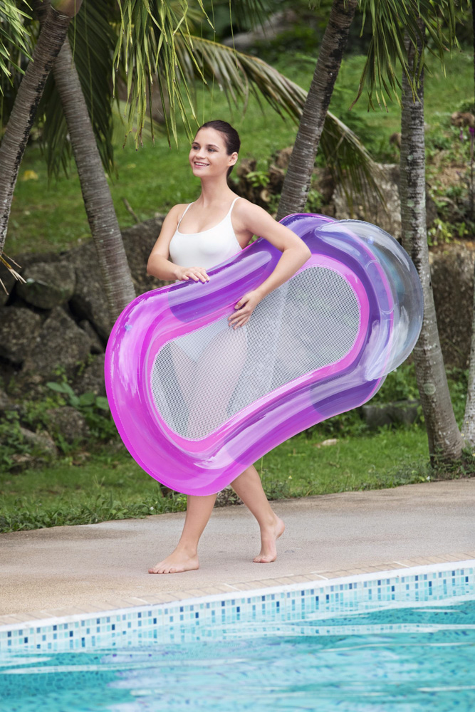 Bestway® Nafukovací lehátko s povrchem Color Shield™ a síťkou. Příjemná síťovina CoolDown™ je opatřena trvanlivým potahem, který brání jejímu poškození. Povrchová úprava Color Shield™ zabraňuje vyblednutí a změně barvy povrchu. Tvárná konstrukce – možné použití jako rovná nafukovací matrace, bazénové křeslo, nebo houpací síť. Lehátko má dvě vzduchové komory a pojistné ventily. Včetně opravné záplaty. Nafouknutá velikost: 22 x 81 x 114 cm. Nenafouknutá velikost: 87 x 140 cm. Rozměry balení: 19,8 x 19,8 x 4 cm. Určeno pro 1 osobu. Maximální nosnost: 100 kg. Věk: 14+