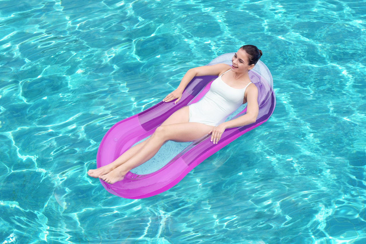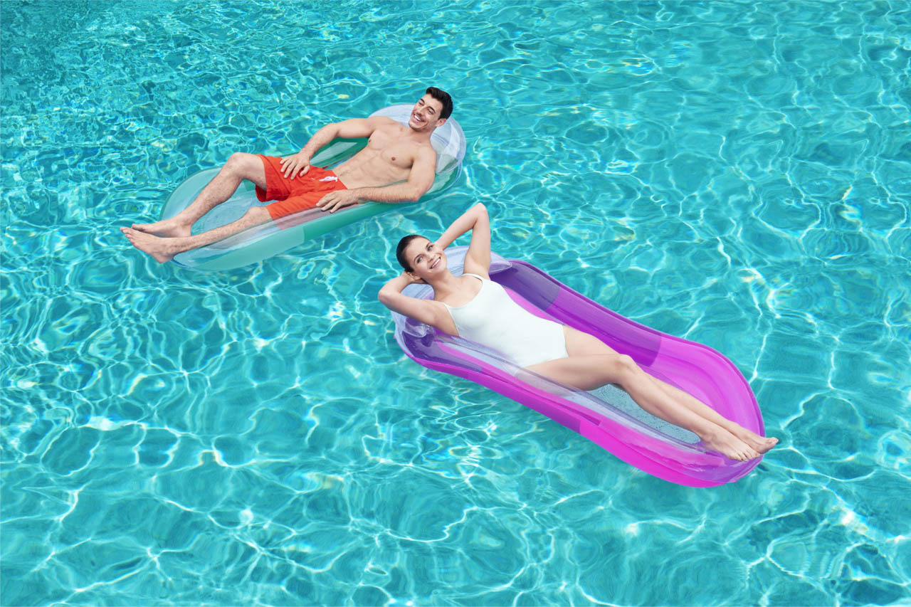 Bestway® Nafukovací lehátko Pool Hammock Comfort Plush™. Příjemná síťovina CoolDown™ je opatřena trvanlivým potahem, který brání jejímu poškození. Povrchová úprava Comfort Plush™ s nepřilnavým povrchem zabraňuje přílišnému zahřívání materiálu, zatímco barva materiálu se při kontaktu s vodou stává jasnější a intenzivnější, což vytváří vizuálně působivý zážitek. Tvárná konstrukce – možné použití jako rovná nafukovací matrace, bazénové křeslo, nebo houpací síť. Lehátko má dvě vzduchové komory a pojistné ventily. Včetně opravné záplaty. Materiál: PVC 39 %, Viskózové vlákno + PVC 35,1 %, PET 25,9 %. Nafouknutá velikost: 22 x 81 x 114 cm. Nenafouknutá velikost: 87 x 145 cm. Rozměry balení: 19,8 x 19,8 x 5,5 cm. Určeno pro 1 osobu. Maximální nosnost: 90 kg.