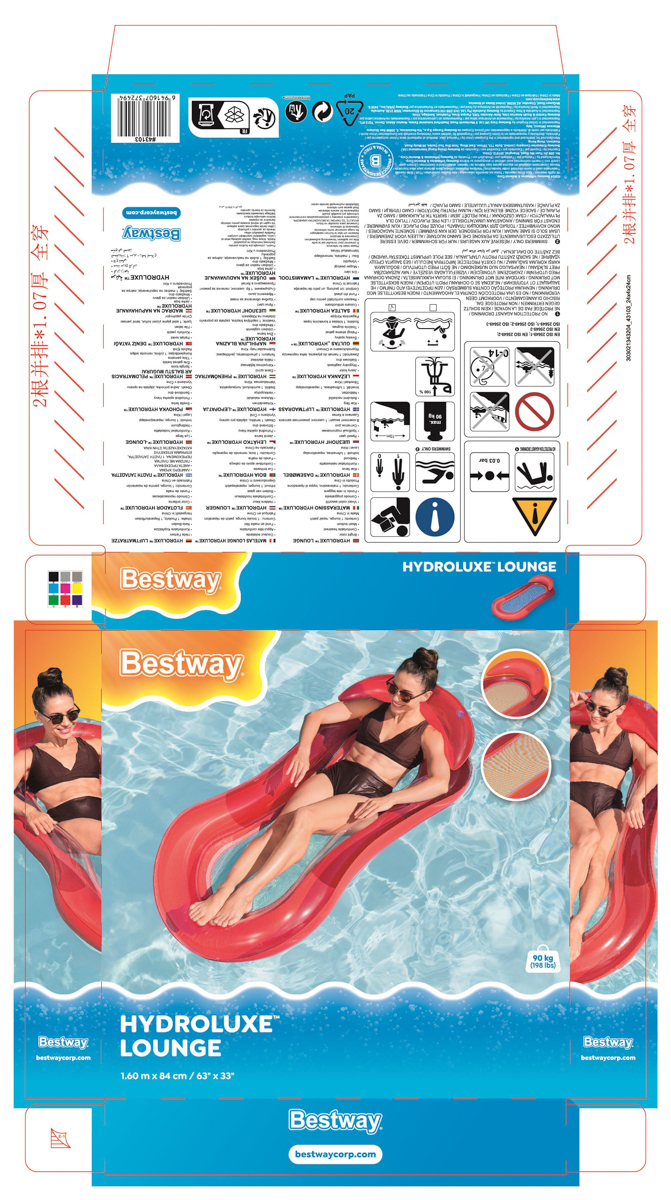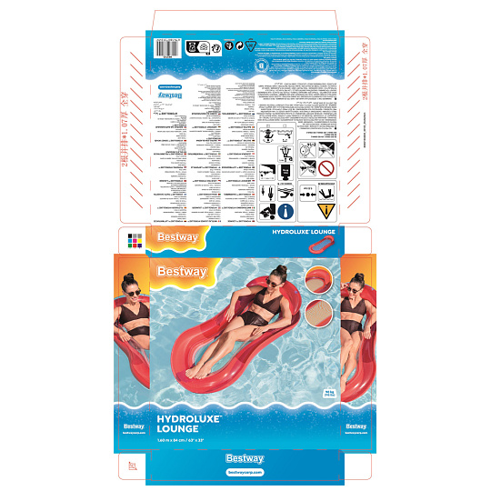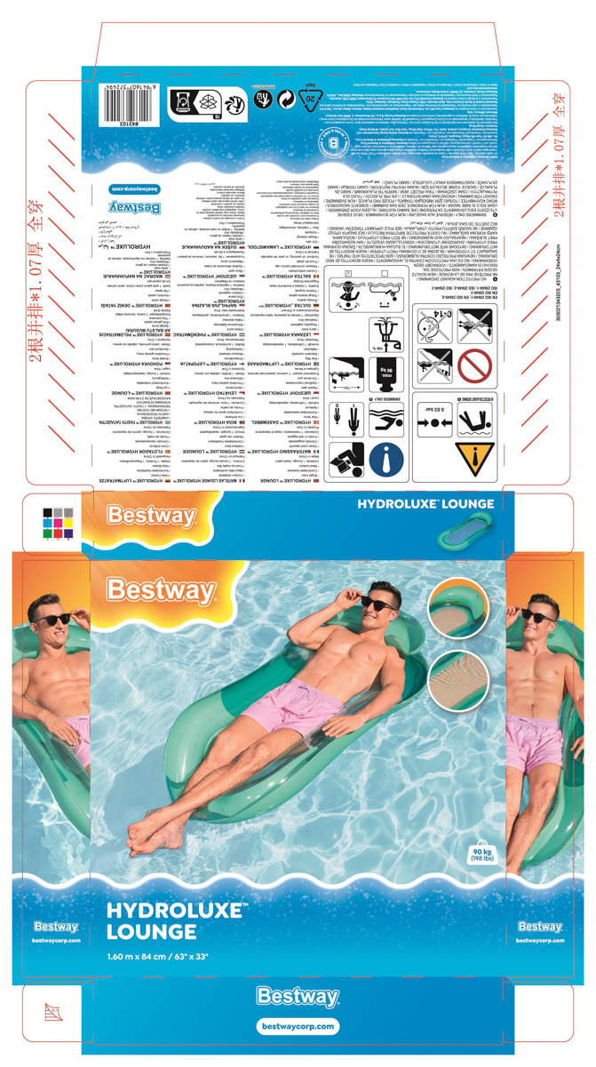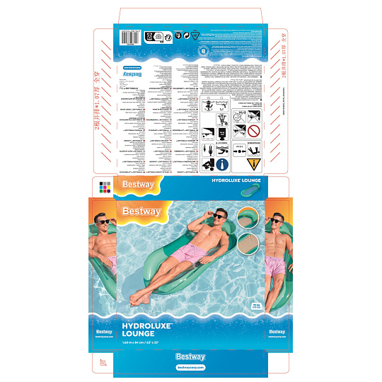 Bestway® Nafukovací lehátko Fashion. Toto jedinečné lehátko přináší nejen osvěžující ochlazení, ale také špetku tropické atmosféry. Lehátko má dvě vzduchové komory a pojistné ventily. Vyrobeno z odolného PVC. Včetně opravné záplaty. Assort je náhodný mix modelů. Výběr nelze ovlivnit. Čtyři varianty v kolekci. Rozměry v nafouknutém stavu: 170 x 54 x 15 cm. Rozměry ve vyfouknutém stavu: 183 x 69 cm. Rozměry balení: 32 x 29 x 2 cm. Určeno pro 1 osobu. Používejte pouze pod dohledem dospělé osoby a ve vodě, kde dítě dosáhne na dno. Maximální nosnost: 100 kg. Věk: 14+