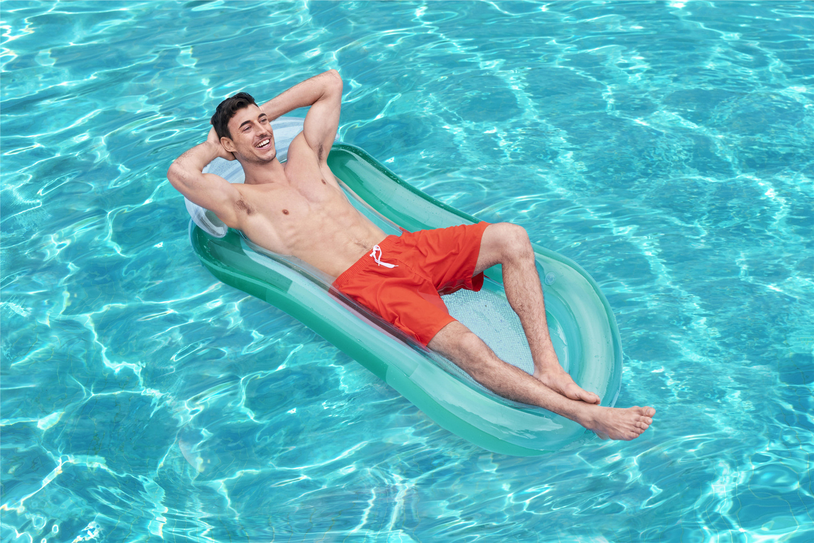 Nafukovací lehátko o rozměrech 183 x 69 cm, v zářivých barvách a s integrovaným polštářem. 2 vzduchové komory a vinyl o tloušťce 0,20 mm zajišťují pevnost a příjemný komfort při ležení. V nabídce ve 3 různých barvách. Maximální zatížení: 80 kg.