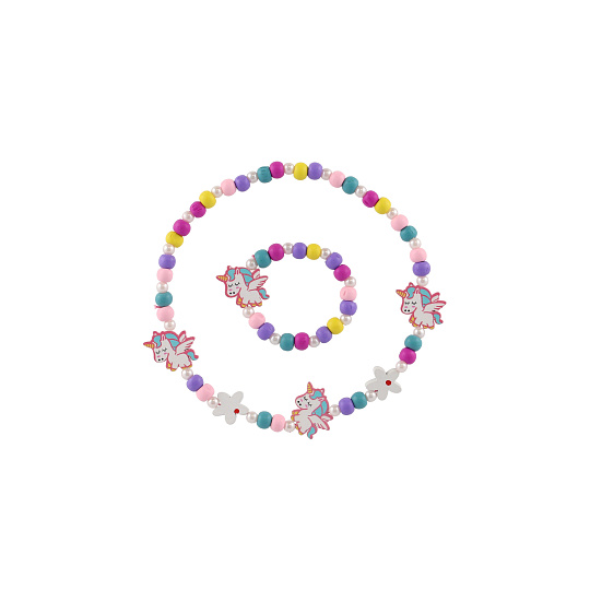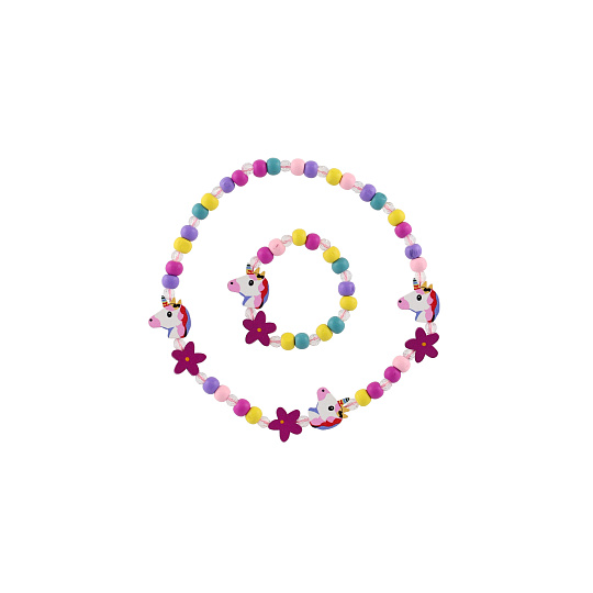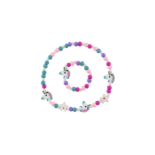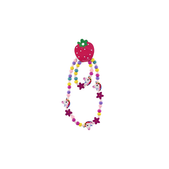 Náhrdelník a náramek korálky jednorožec dřevo/plast 20cm v sáčku