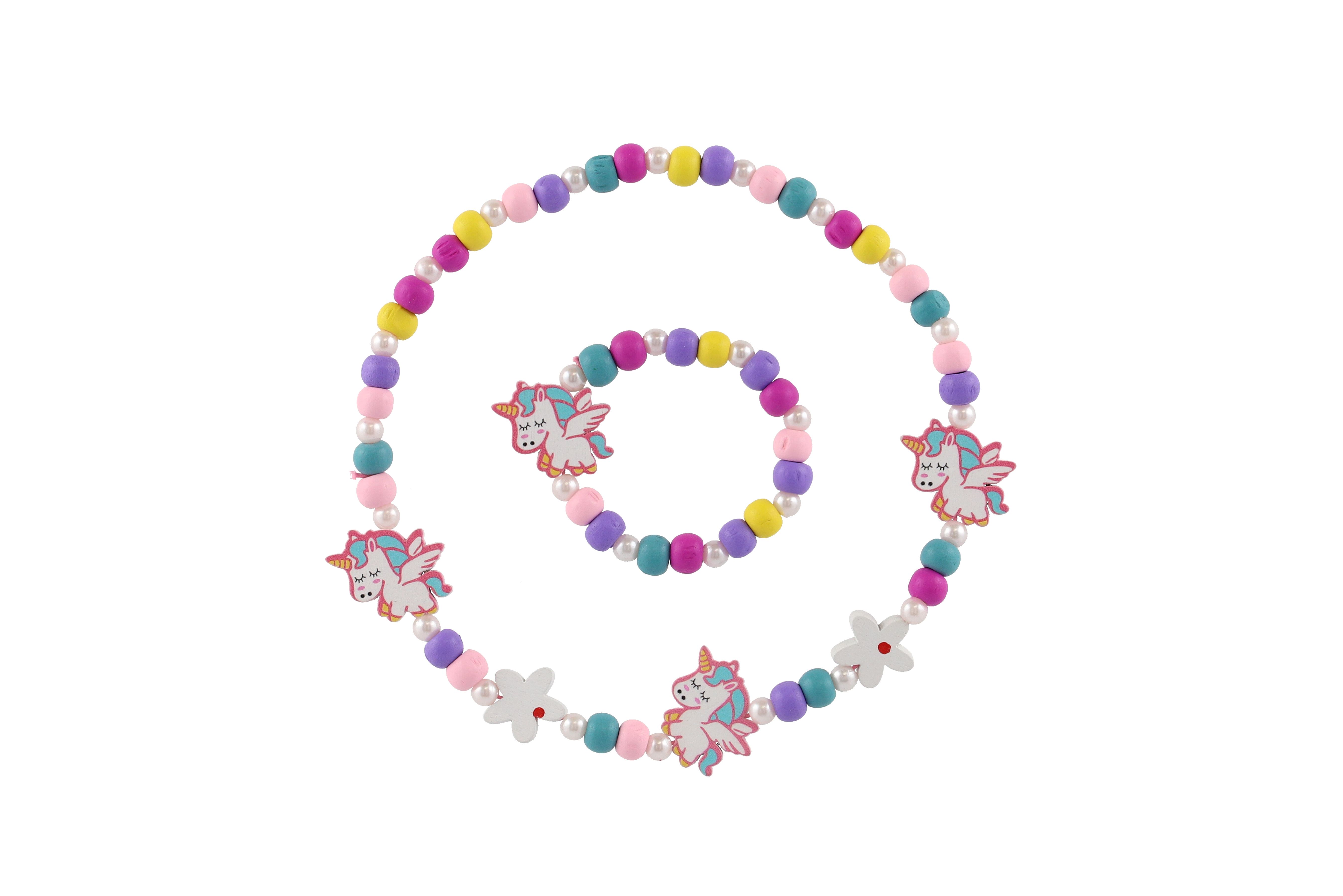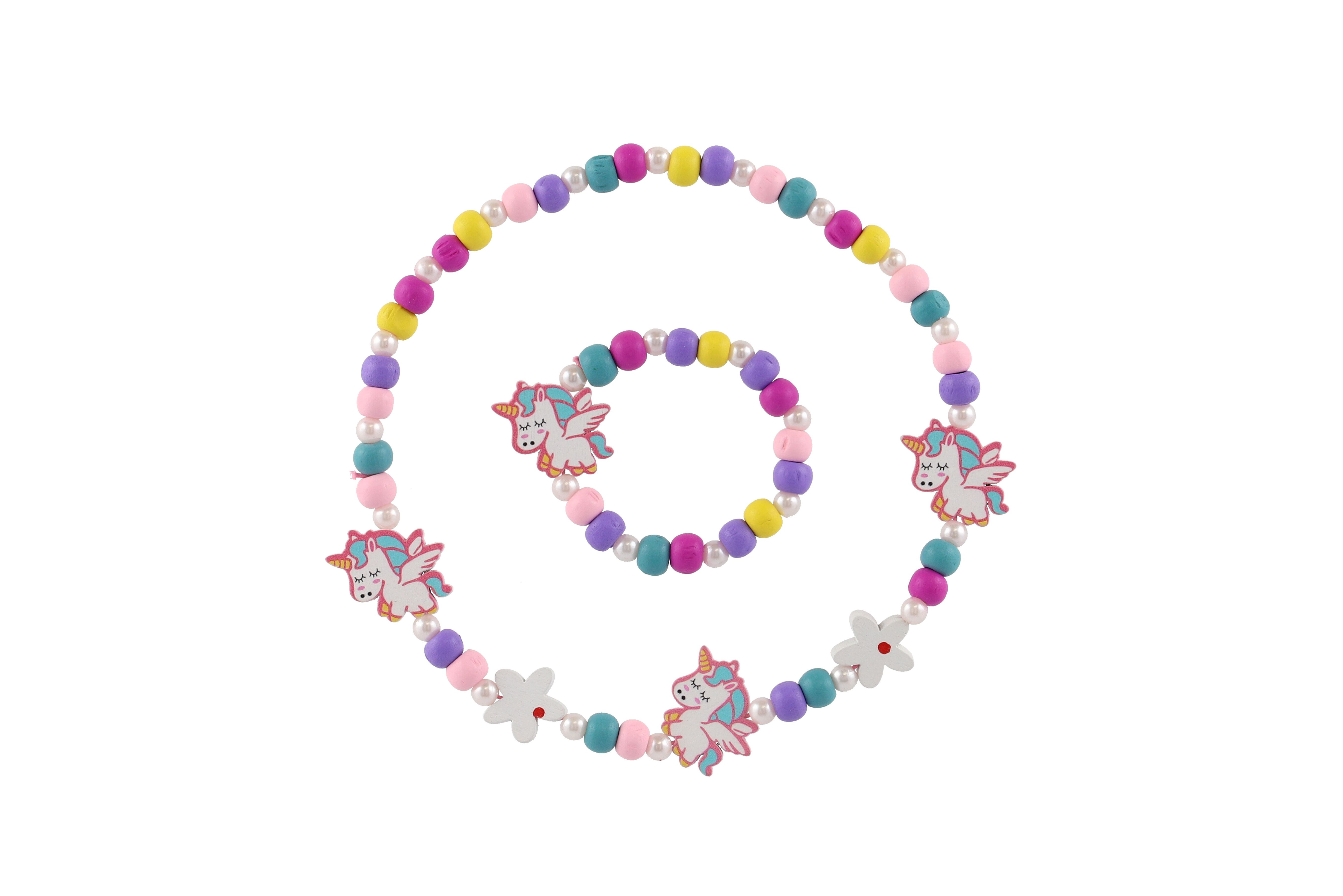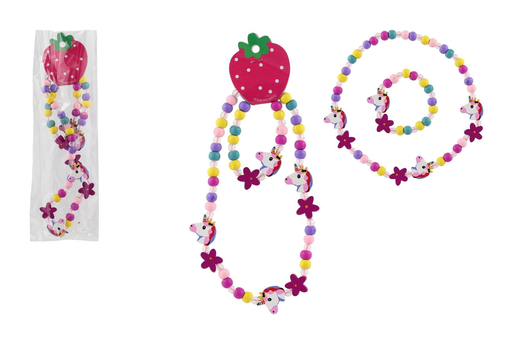 Náhrdelník a náramek korálky jednorožec dřevo/plast 20cm v sáčku