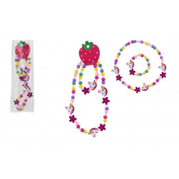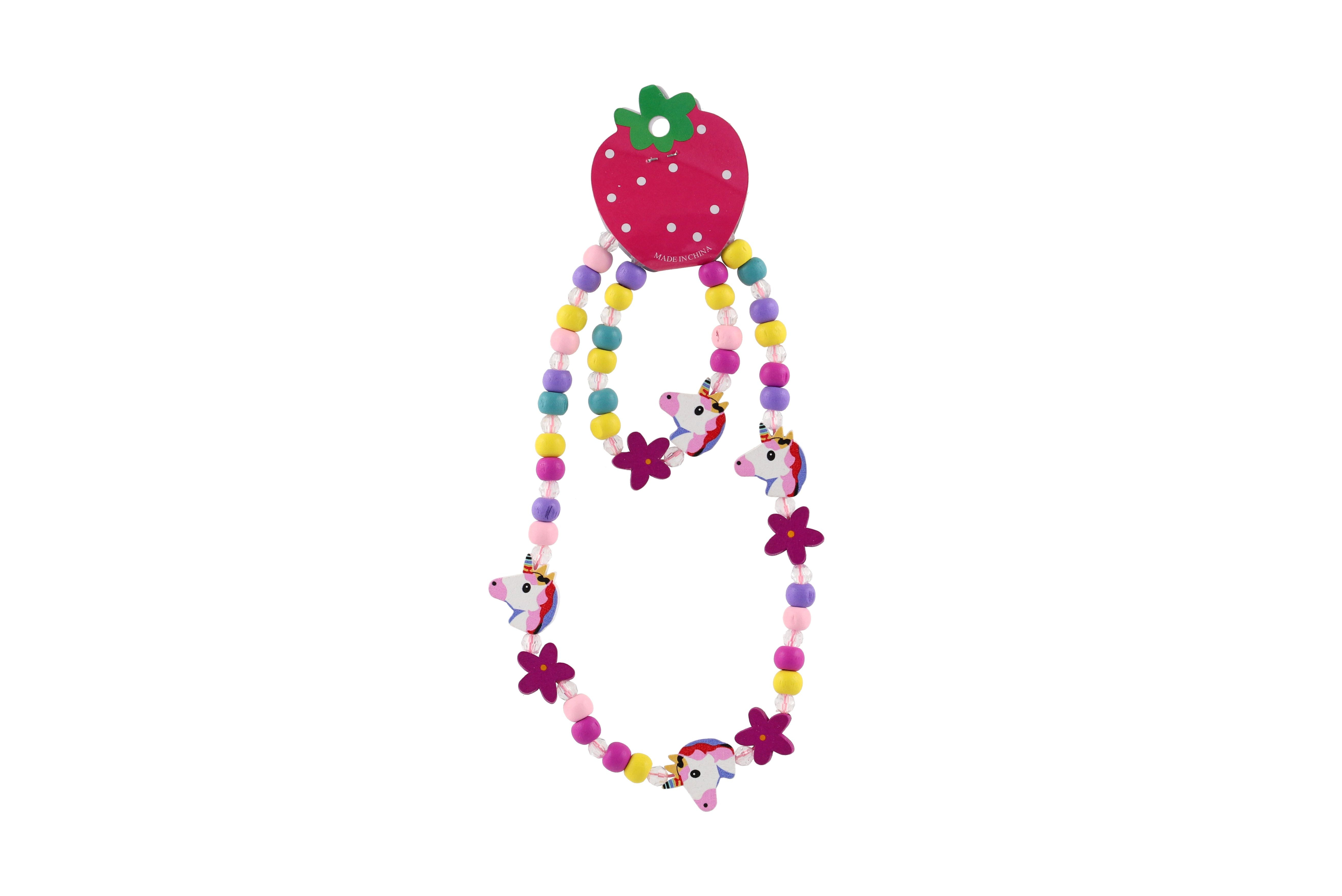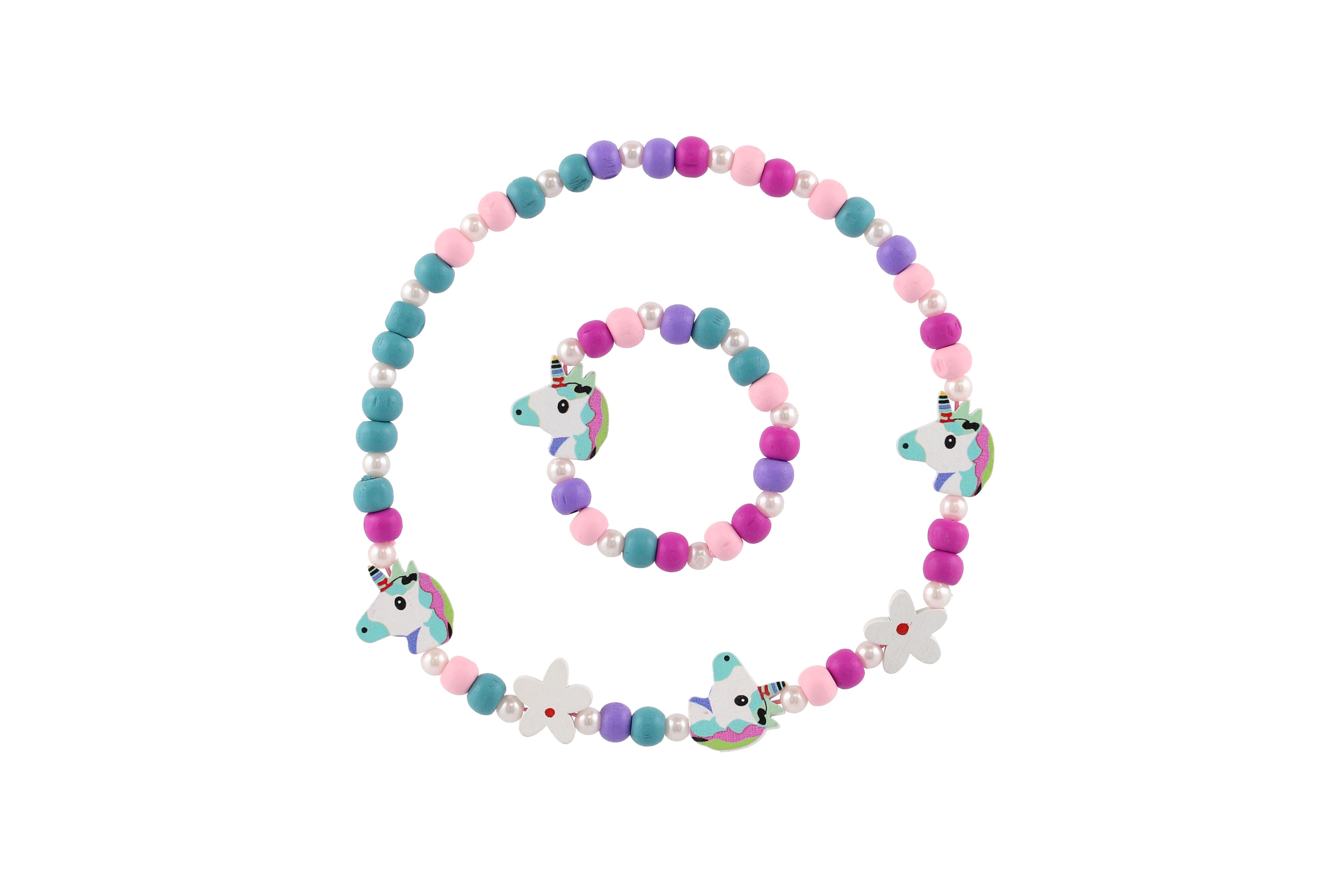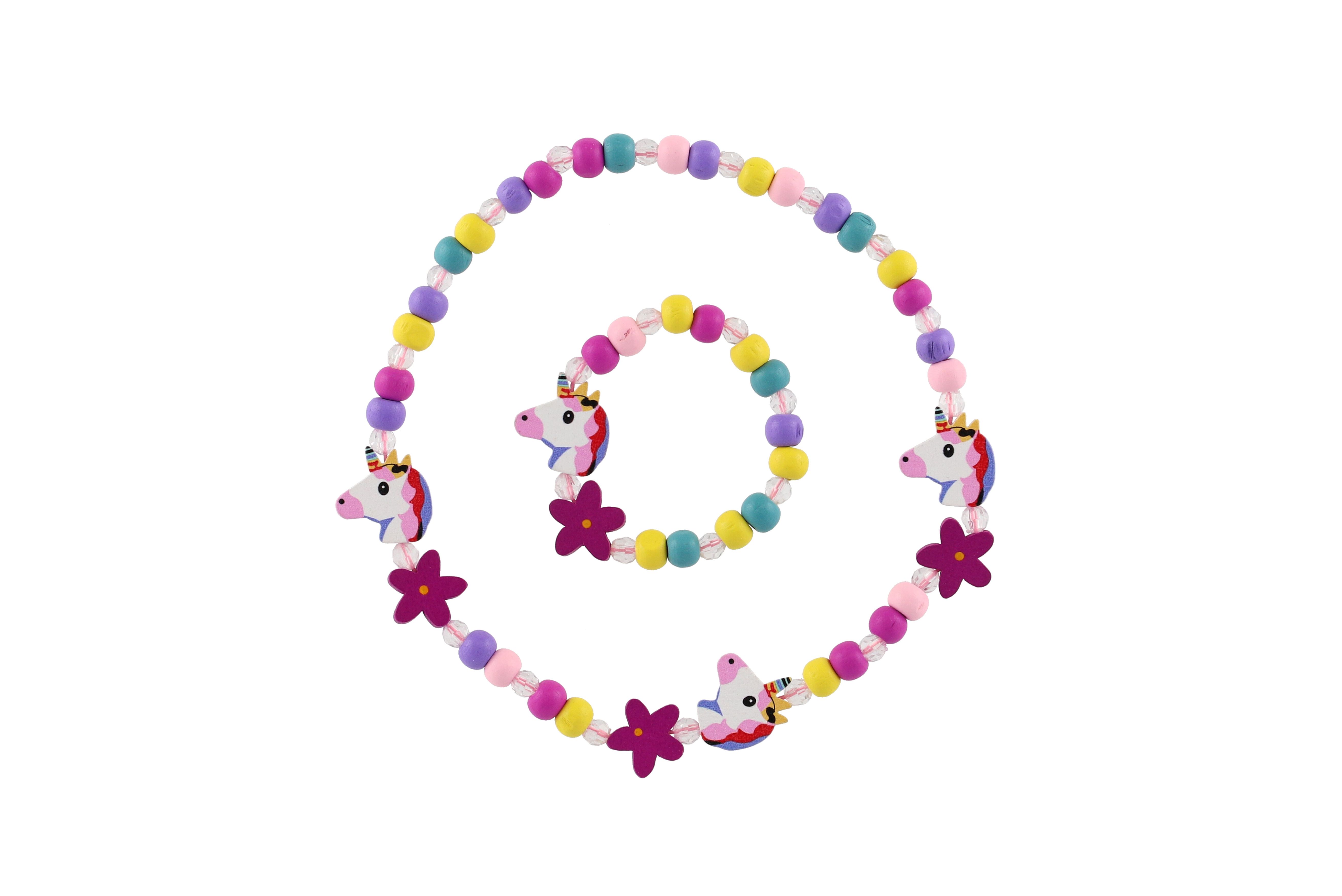 Náhrdelník a náramek korálky jednorožec dřevo/plast 20cm v sáčku