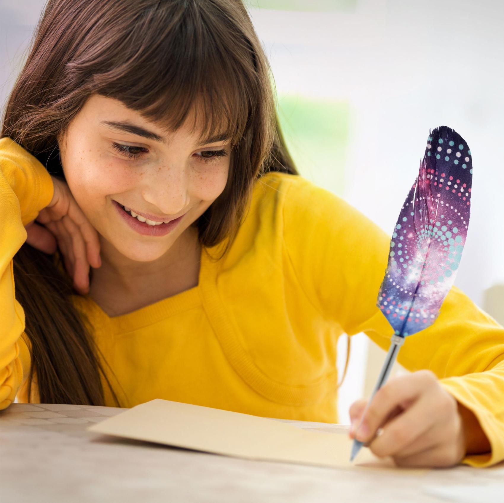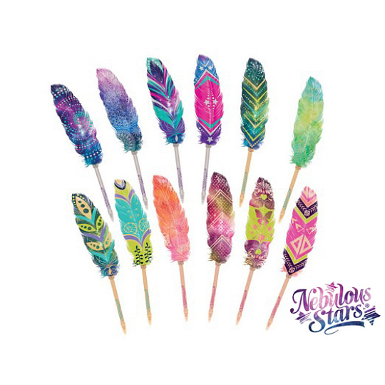 Piš stylově s originálním perem Nebulous Stars s peříčkem. Kolekce nabízí 12 krásných vzorů, které jsou vytištěny na skutečném peří, takže každé pero působí jedinečně a elegantně.
