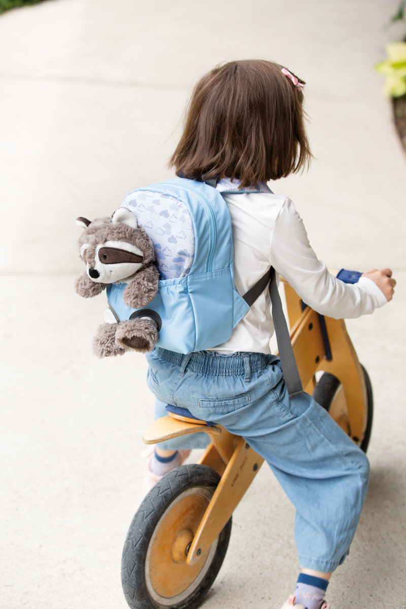 NICI Batůžek 21x26cm s plyšákem Mýval 25cm, světle modrý