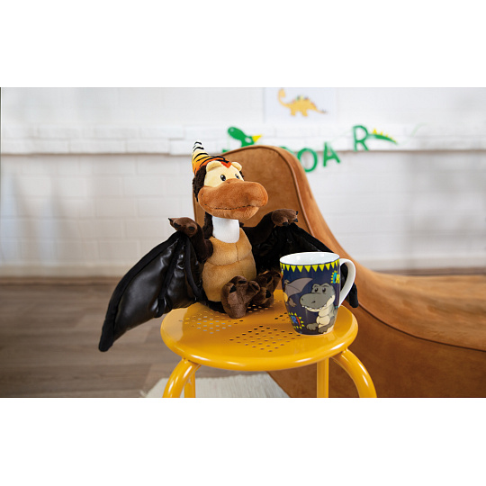 Veselý dinosaurus Orny se pyšní svými velkými křídly, na které je náležitě hrdý. Pruhovaný roh a huňaté tělo z něj dělají dobrého společníka. V sérii GREEN se téměř výhradně používají plyšové a výplňové materiály vyrobené z recyklovaných materiálů. Výška: 17cm. Věk: 0+