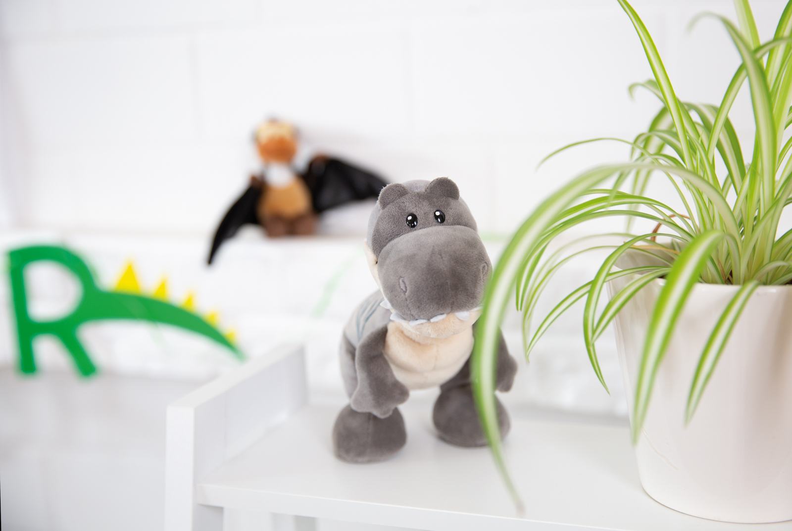 Roztomilý plyšový dinosaurus Tony-Rex s modrými pruhy na zádech. Roztomilá vyšívaná očka a hebký kožíšek z něj dělají bezva kamaráda. V sérii GREEN od Nici se téměř výhradně používají plyšové a výplňové materiály vyrobené z recyklovaných materiálů. Výška: 31cm. Věk: 0+
