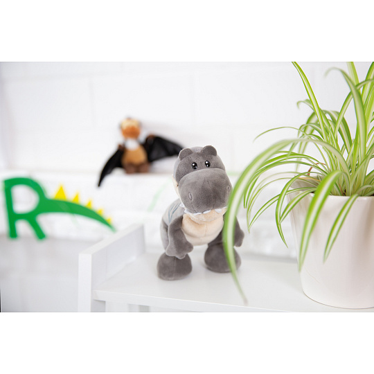 Roztomilý plyšový dinosaurus Tony-Rex s modrými pruhy na zádech. Roztomilá vyšívaná očka a hebký kožíšek z něj dělají bezva kamaráda. V sérii GREEN od Nici se téměř výhradně používají plyšové a výplňové materiály vyrobené z recyklovaných materiálů. Výška: 25cm. Věk: 0+