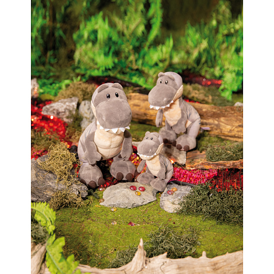 Roztomilý plyšový dinosaurus Tony-Rex s modrými pruhy na zádech. Roztomilá vyšívaná očka a hebký kožíšek z něj dělají bezva kamaráda. V sérii GREEN od Nici se téměř výhradně používají plyšové a výplňové materiály vyrobené z recyklovaných materiálů. Výška: 25cm. Věk: 0+