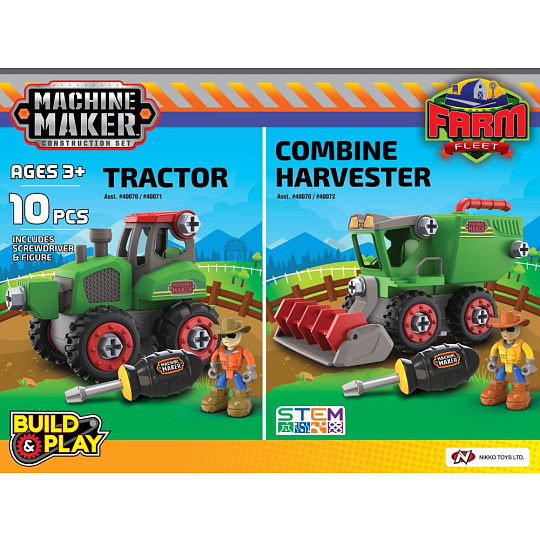 Zemědělské stroje Machine Maker. Na výběr dva druhy. Obsahuje šroubovák. Vhodné od 3 let.