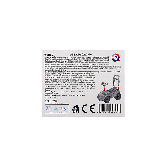 Odrážedlo je pomocníkem při prvních krůčcích vašeho dítěte. Poskytuje mu dostatečnou oporu a pomáhá naučit udržet rovnováhu. Pod sedačkou najdete úložný prostor. Na volantu pískací klakson. Vyrobeno z kvalitního a odolného materiálu. Maximalní nosnost 20 kg. Rozměry výrobku 48 x 23 x 22cm. Vhodné pro děti od 12 měsíců.
