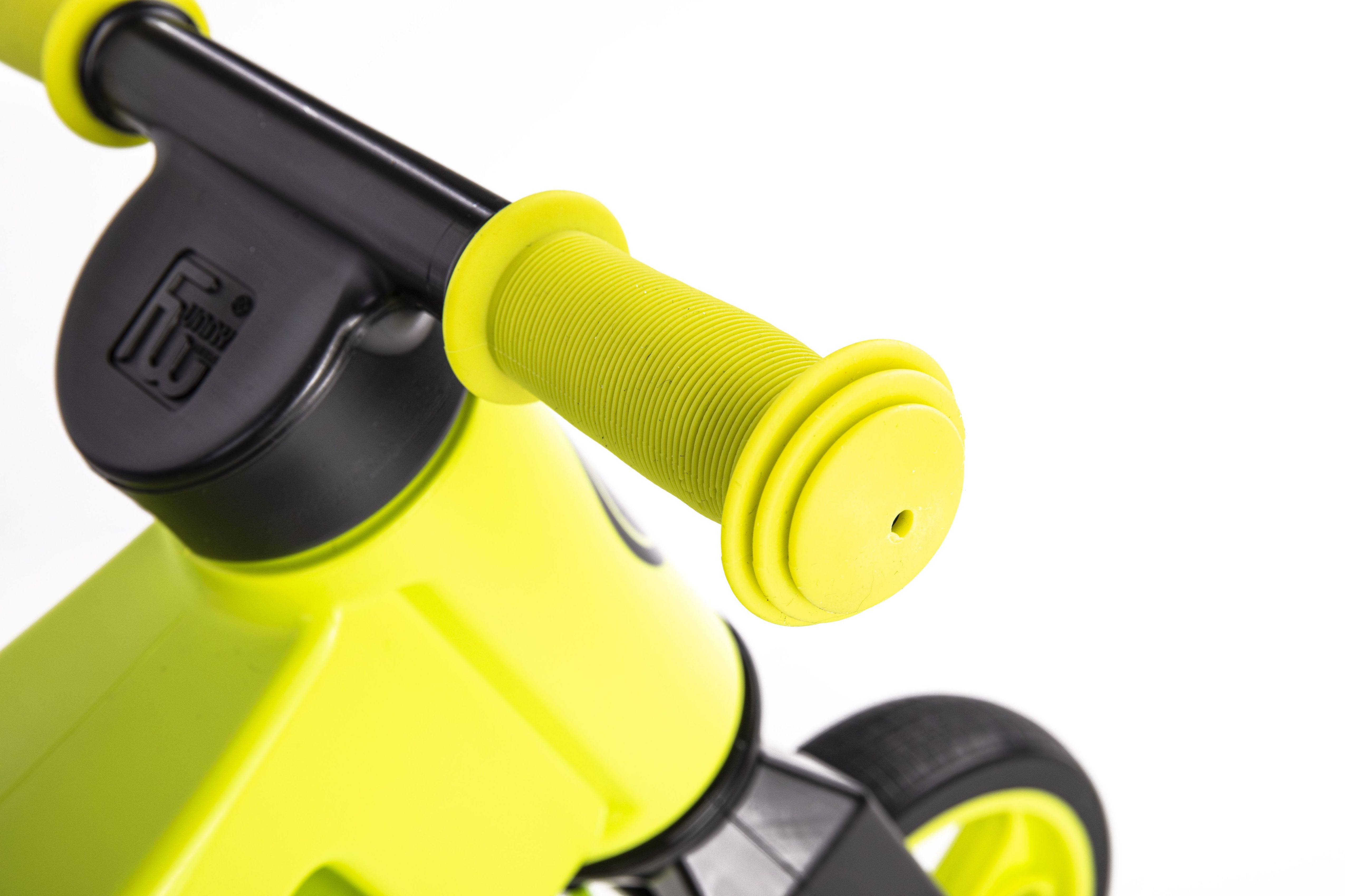 Odrážedlo FUNNY WHEELS Rider SuperSport 2 v 1 – hravě změníte tříkolku na dvoukolové balanční odrážedlo. Dítě není nuceno si zvykat na novou hračku, stále řídí „svůj stroj“, takže zvládne změnu a naučí se rovnováze beze strachu a v pohodě. Výškově nastavitelné – 2 polohy nastavení na obou nápravách. Pro menší i větší děti. Designová kola s měkkými PNEUMATIKAMI, které zajistí bezhlučnou jízdu, v interiéru nezanechávají na podlaze žádné stopy a nelze je píchnout (jsou bez vzduchu). Popruh na PŘENÁŠENÍ odrážedla. Jednoduše si odrážedlo zavěsíte na rameno, a přitom máte obě ruce stále volné. Praktické, kdykoli potřebujete odrážedlo přemístit bez malého jezdce. Aretace řídítek – vidlice má omezený rozsah otáčení, řídítka se nemohou přetočit. Aretace zabraňuje poranění bříška dítěte. Řídítka jsou opatřena barevnými, superměkkými rukojeťmi, které jsou na koncích rozšířené a chrání tak ruce dětí před poraněním. Vyvinuto po konzultaci s ortopedy. Vyrobeno v ČR z odolného a nezávadného plastu se zahlazenými spoji. Certifikováno v ČR. Doporučený věk: od 18 měsíců (nebo od 80 cm výšky) Nosnost: 25 kg Výška sedla: 28/30 cm Šířka řídítek: 30 cm Rozteč zadních kol: 20 cm Váha odrážedla: 1,9 kg Rozměry balení 56 x 27 x 14,5 cm.