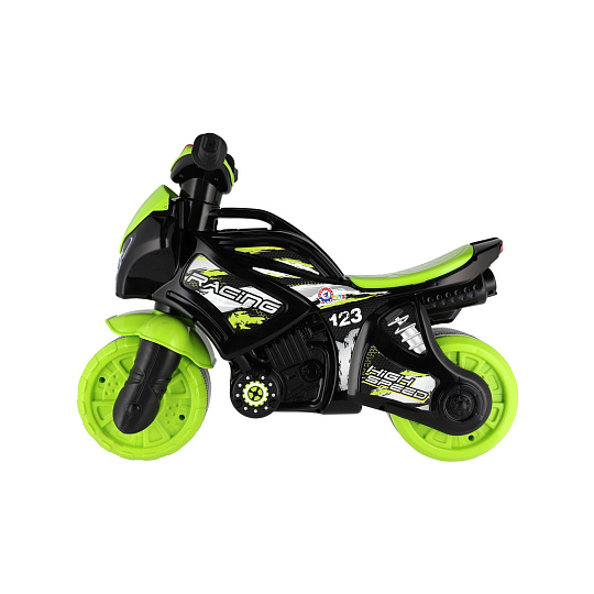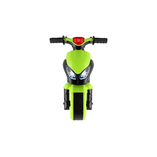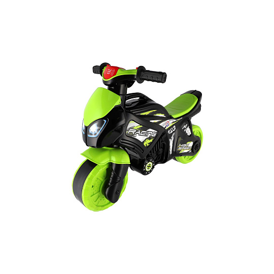 Stylové dětské odrážedlo ve tvaru závodní motorky nadchne každého malého jezdce. Moderní zeleno-černé provedení s atraktivními sportovními samolepkami dodává motorce realistický vzhled skutečného závodního stroje. Široká kola zajišťují dobrou stabilitu a pohodlnou jízdu doma i venku na zpevněném povrchu. Ergonomicky tvarované sedátko a snadno uchopitelná řídítka jsou přizpůsobena dětským rukám. Odrážedlo je vybaveno zvukovými efekty, které jízdu ještě více zatraktivní. Skvělý tip na dárek pro malé milovníky motorek, kteří si chtějí užít první „závodní“ jízdy bezpečným způsobem. Maximální nosnost je 20kg. Baterie 2x AA nejsou součástí výrobku.