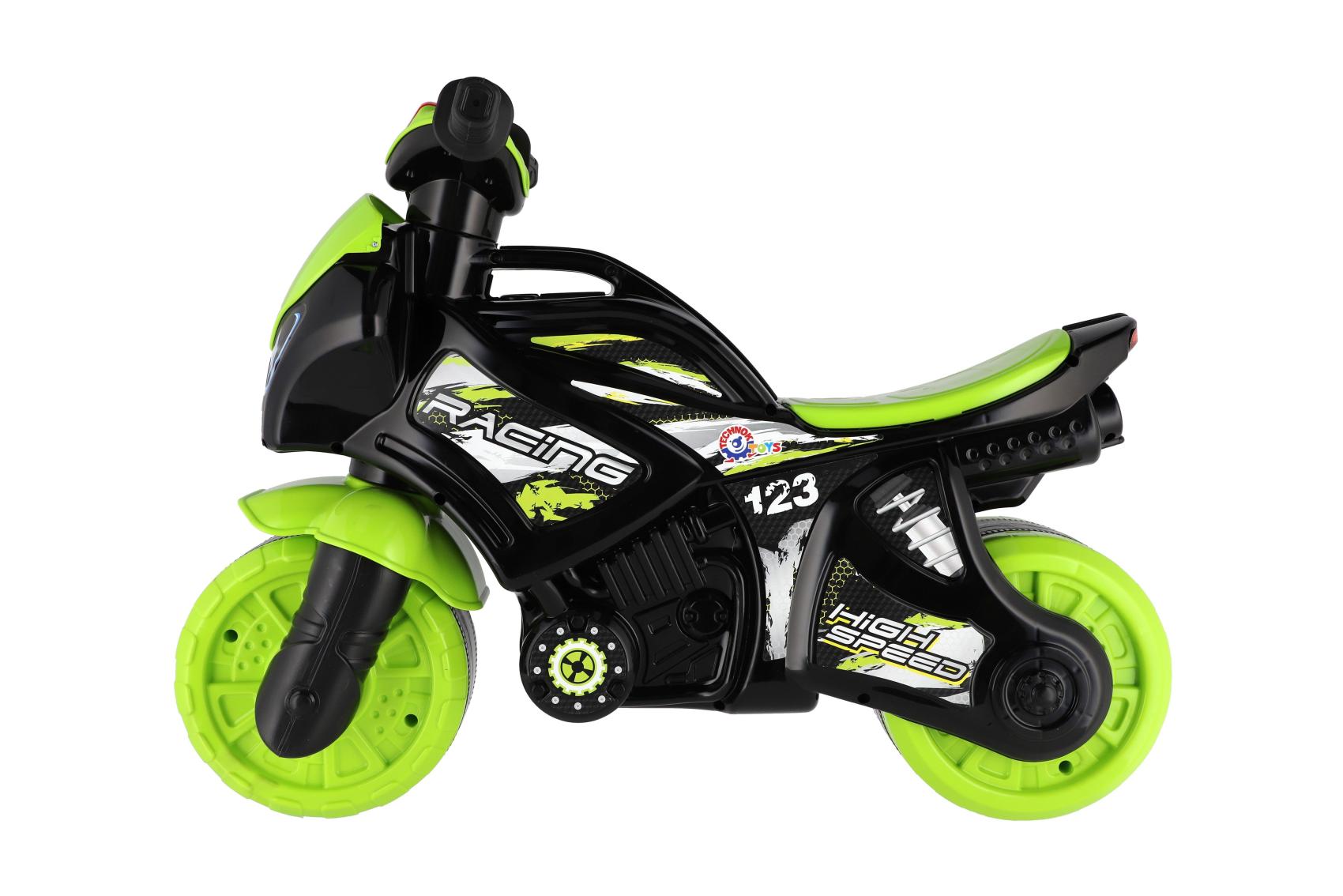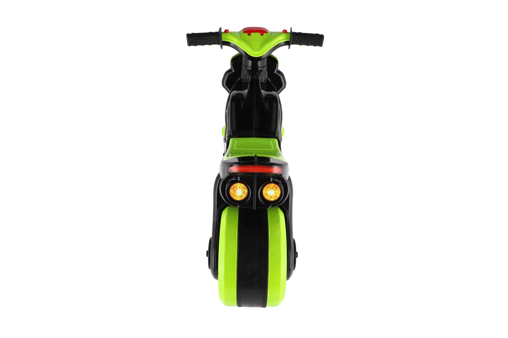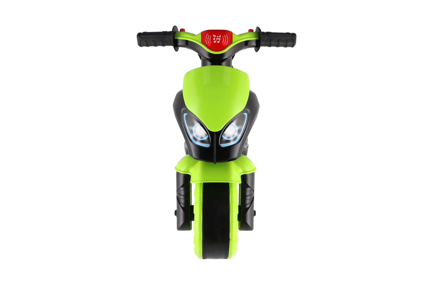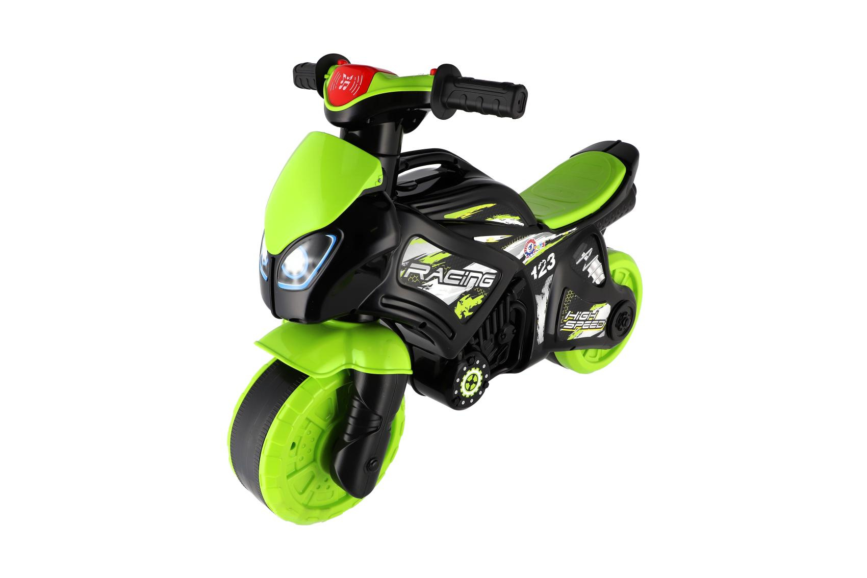 Stylové dětské odrážedlo ve tvaru závodní motorky nadchne každého malého jezdce. Moderní zeleno-černé provedení s atraktivními sportovními samolepkami dodává motorce realistický vzhled skutečného závodního stroje. Široká kola zajišťují dobrou stabilitu a pohodlnou jízdu doma i venku na zpevněném povrchu. Ergonomicky tvarované sedátko a snadno uchopitelná řídítka jsou přizpůsobena dětským rukám. Odrážedlo je vybaveno zvukovými efekty, které jízdu ještě více zatraktivní. Skvělý tip na dárek pro malé milovníky motorek, kteří si chtějí užít první „závodní“ jízdy bezpečným způsobem. Maximální nosnost je 20kg. Baterie 2x AA nejsou součástí výrobku.