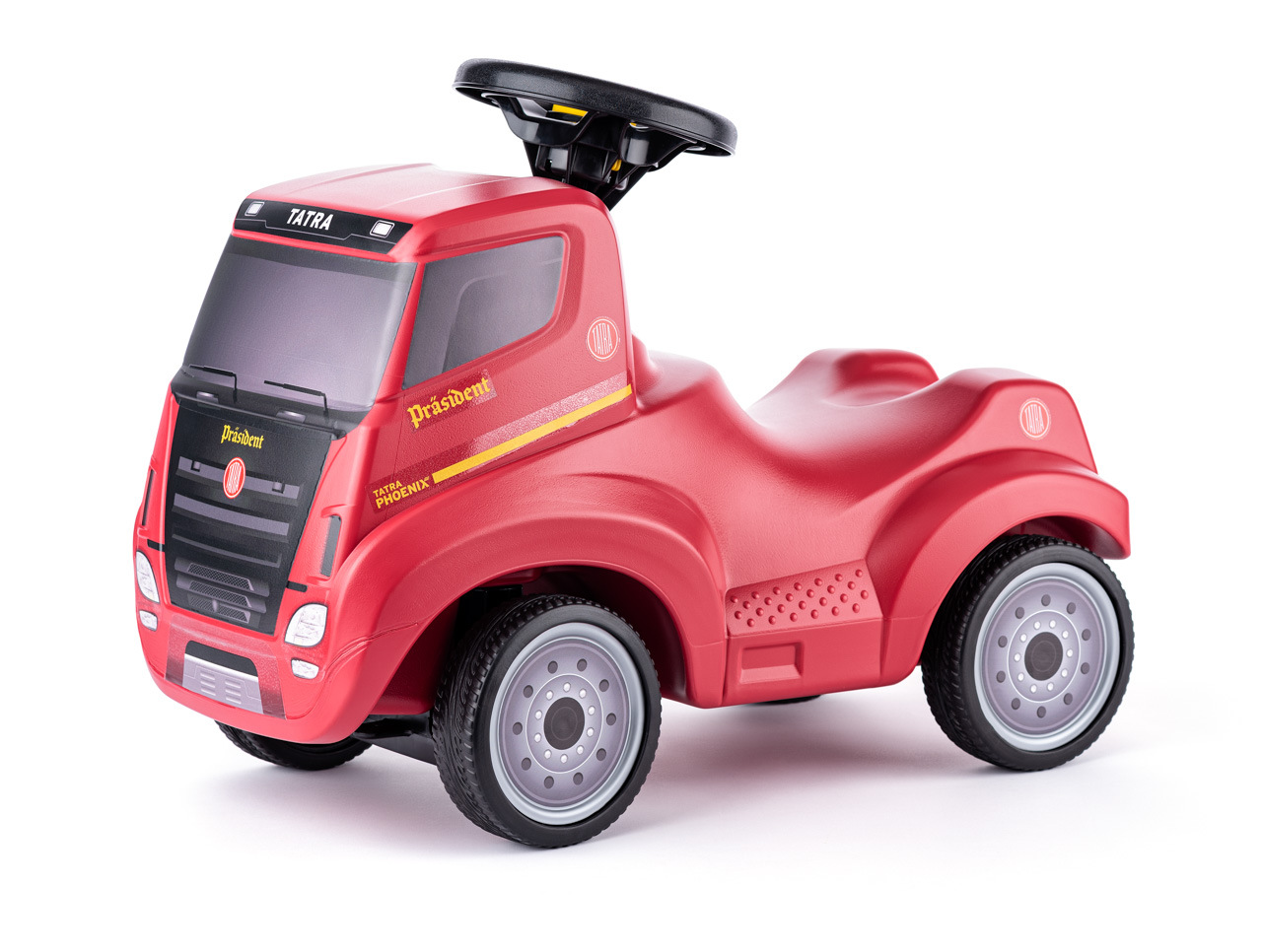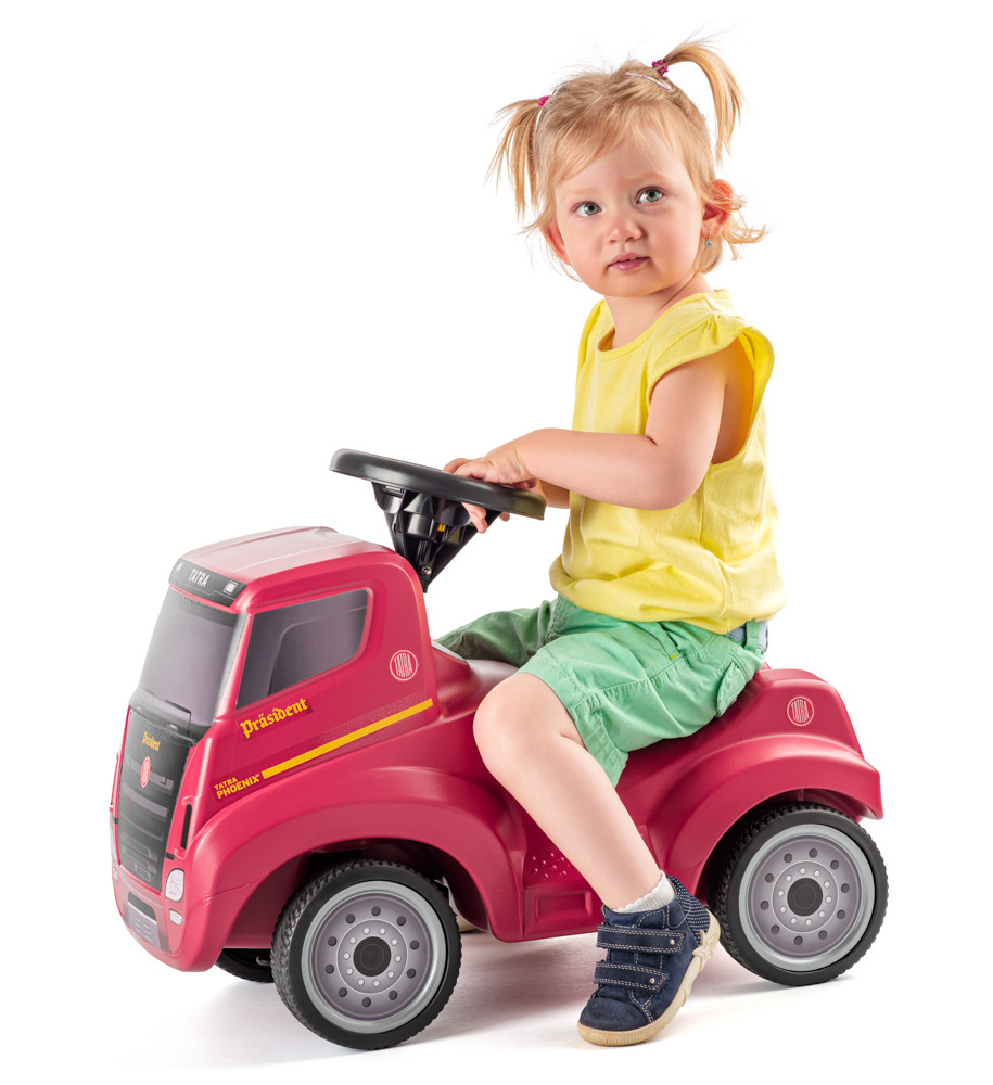 LIMITOVANÁ SÉRIE – Odstrkovadlo TATRA Phoenix President. Robustní a stabilní tělo odstrkovadla je vyrobené ve špičkové kvalitě z organického plastu. Odstrkovadlo je snadno ovladatelné a pohodlně řiditelné díky tichým pneumatikám, které mají vlastnosti jako guma – nedělají hluk a nezanechávají škrábance na podlaze. Na volantu je integrovaný jednoduchý klakson. Ergonomický design je vhodný i pro větší děti, které mohou díky vybrané části v sedadle jezdit v kleče. Součástí odstrkovadla je očko pro připojení přívěsu. Vhodné pro děti od 1,5 roku do 4 let (minimální výška dítěte 70 cm).