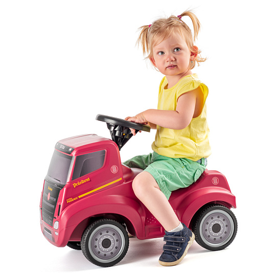 Červené provedení je vhodné pro dívky i chlapce. Na odstrkovadle lze jezdit ve vnitřních i venkovních prostorách.