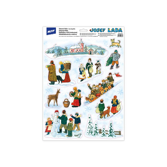 Vánoční okenní fólie se zimními motivy Josefa Lady. Vyzdobte si okno těmito krásnými samolepkami. Vytvoří Vám kouzelnou atmosféru tradičních čekých Vánoc. Jsou vhodné na jakékoli hladké plochy, například sklo, výlohy, zrcadla nebo kachličky. Čisté, bez lepidla a opakovaně použitelné.NÁVOD:1. Sloupněte z podložky obrázek a umístěte na čisté, případně navlhčené sklo stranou, která byla na podložce. 2. Obrázek elektrostaticky přilne.3. Folie se snadno sloupne a dá se přemístit. Nelze vybrat druh, dodáváme dle skladové dostupnosti.
