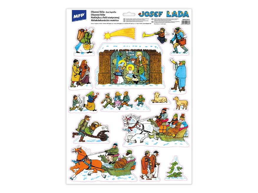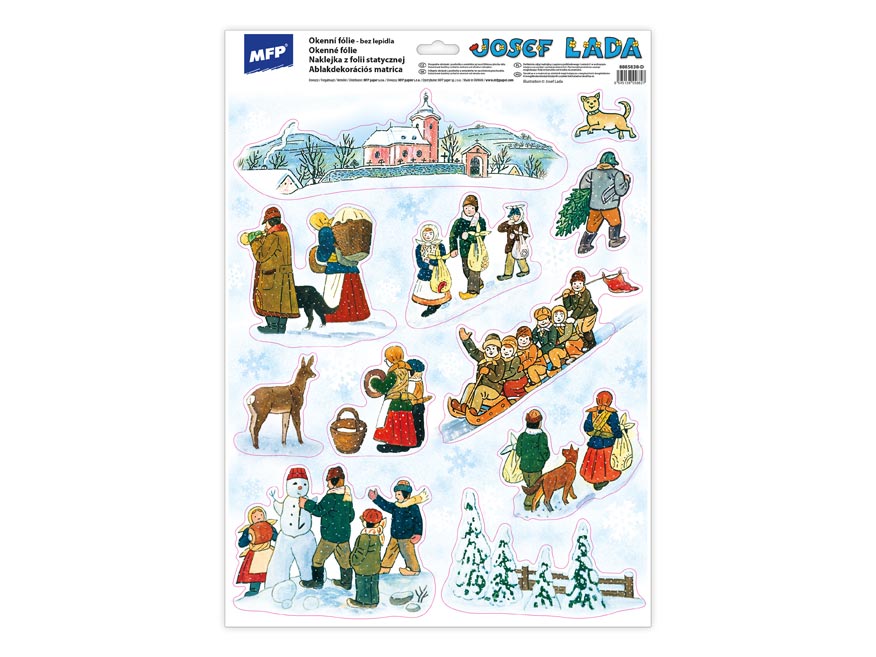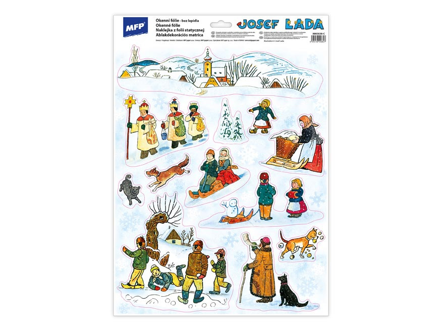Vánoční okenní fólie se zimními motivy Josefa Lady. Vyzdobte si okno těmito krásnými samolepkami. Vytvoří Vám kouzelnou atmosféru tradičních čekých Vánoc. Jsou vhodné na jakékoli hladké plochy, například sklo, výlohy, zrcadla nebo kachličky. Čisté, bez lepidla a opakovaně použitelné.NÁVOD:1. Sloupněte z podložky obrázek a umístěte na čisté, případně navlhčené sklo stranou, která byla na podložce. 2. Obrázek elektrostaticky přilne.3. Folie se snadno sloupne a dá se přemístit. Nelze vybrat druh, dodáváme dle skladové dostupnosti.