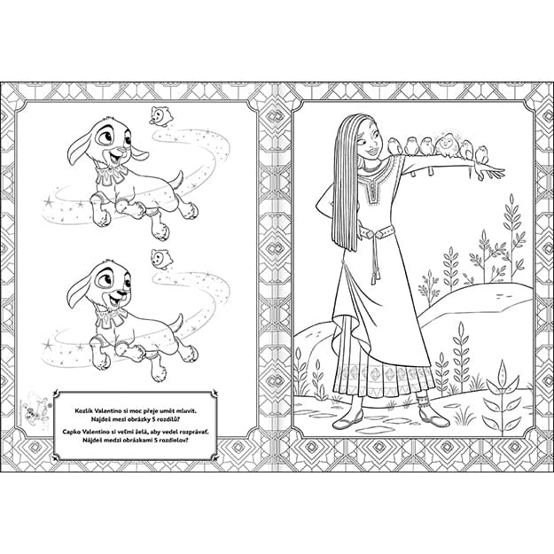Omalovánky obsahují 16 černobílých stran s obrázky k vybarvení a oblíbenými aktivitami.