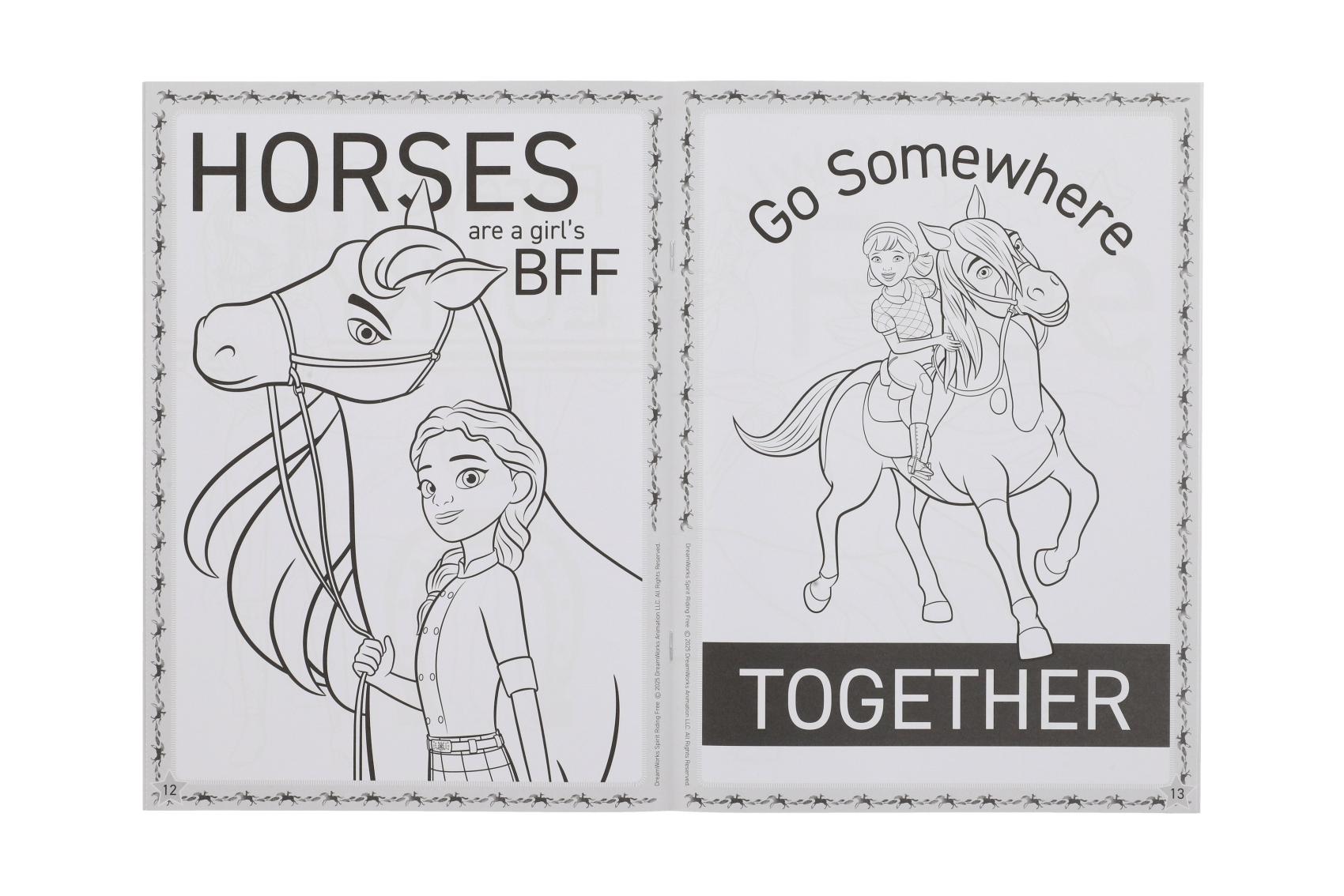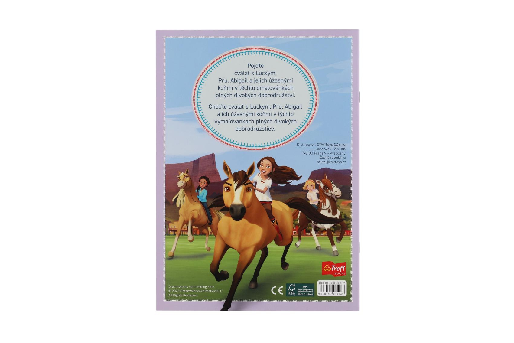 Omalovánky s motivem koní. Obsahují 24 stran. Rozměr 200 x 273 mm.