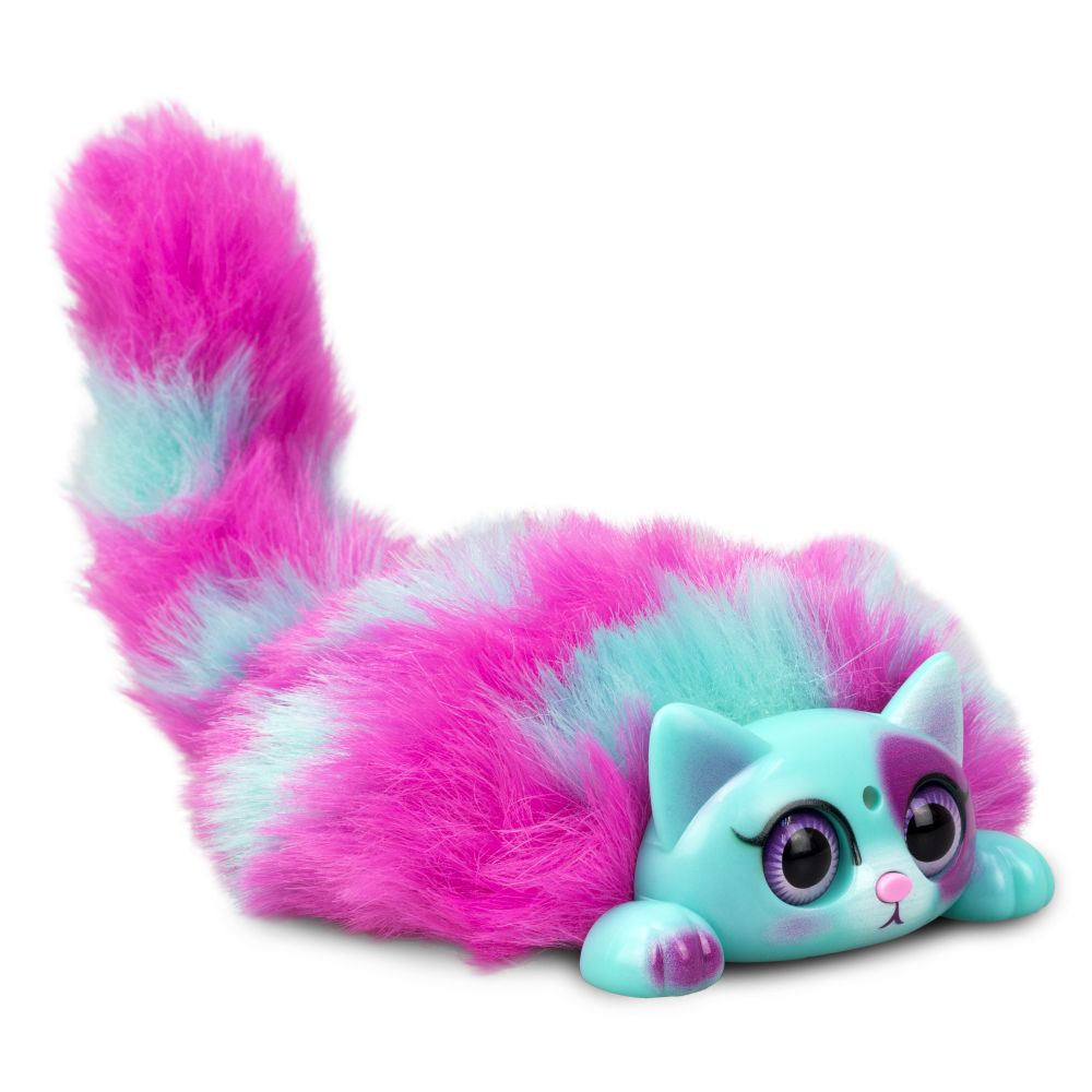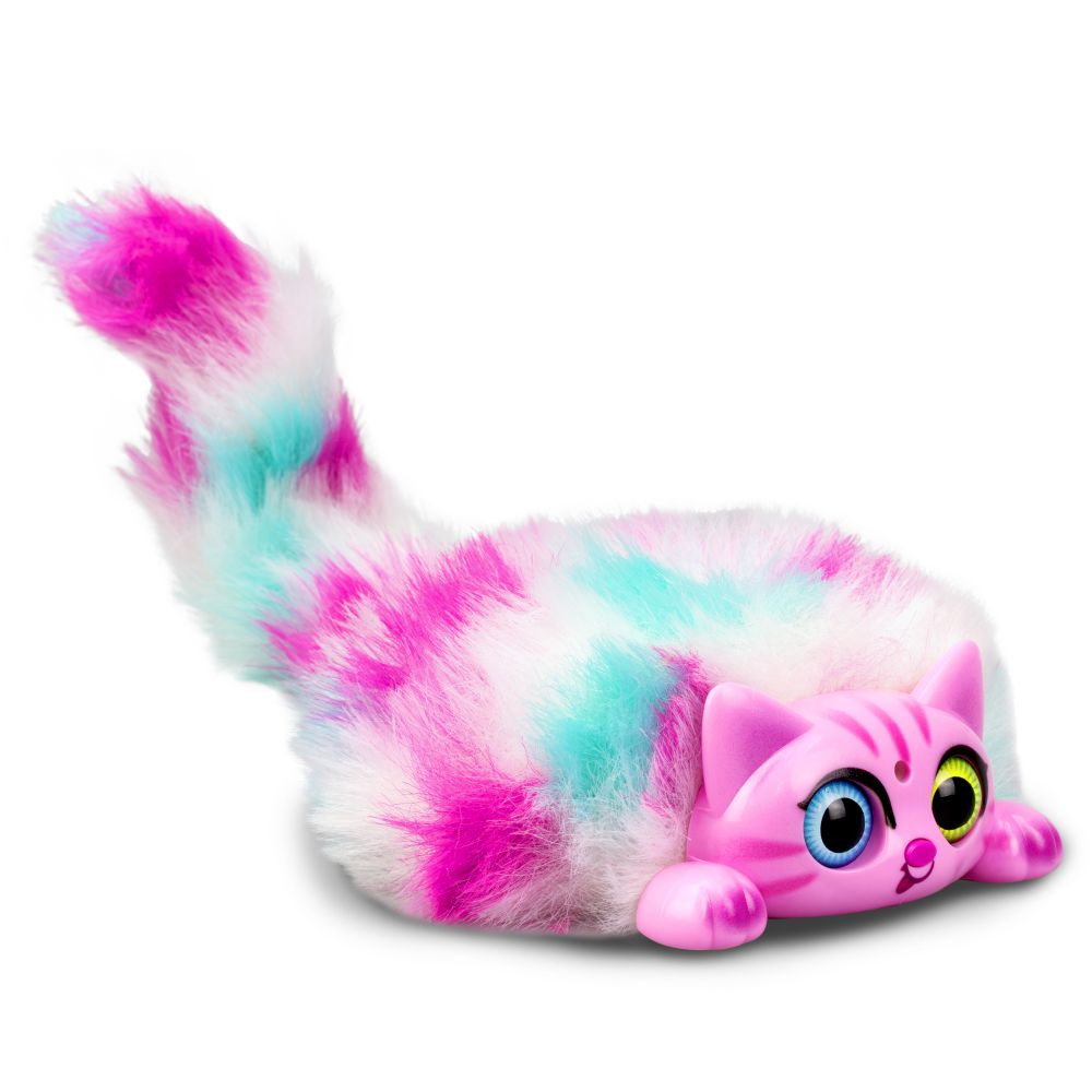 Krásně barevné interaktivní koťě, které při pohlazení a stisknutí nosu svítí a vrní. Reaguje na fouknutí do obličeje a pomocí páčky lze manuálně hýbat ocasem. Baterie není součástí balení.