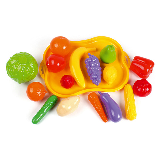 Plastový podnos/tác s atrapami ovoce a zeleniny je výborným dárkem pro každou malou kuchařku. Velký výběr potravin umožní malé kuchařce uvařit více lahodných pokrmů najednou a pohostit tak své kamarádky či panenky. Rozměry výrobku: 32 x 11 x 23 cm Vhodné pro děti od 3 let