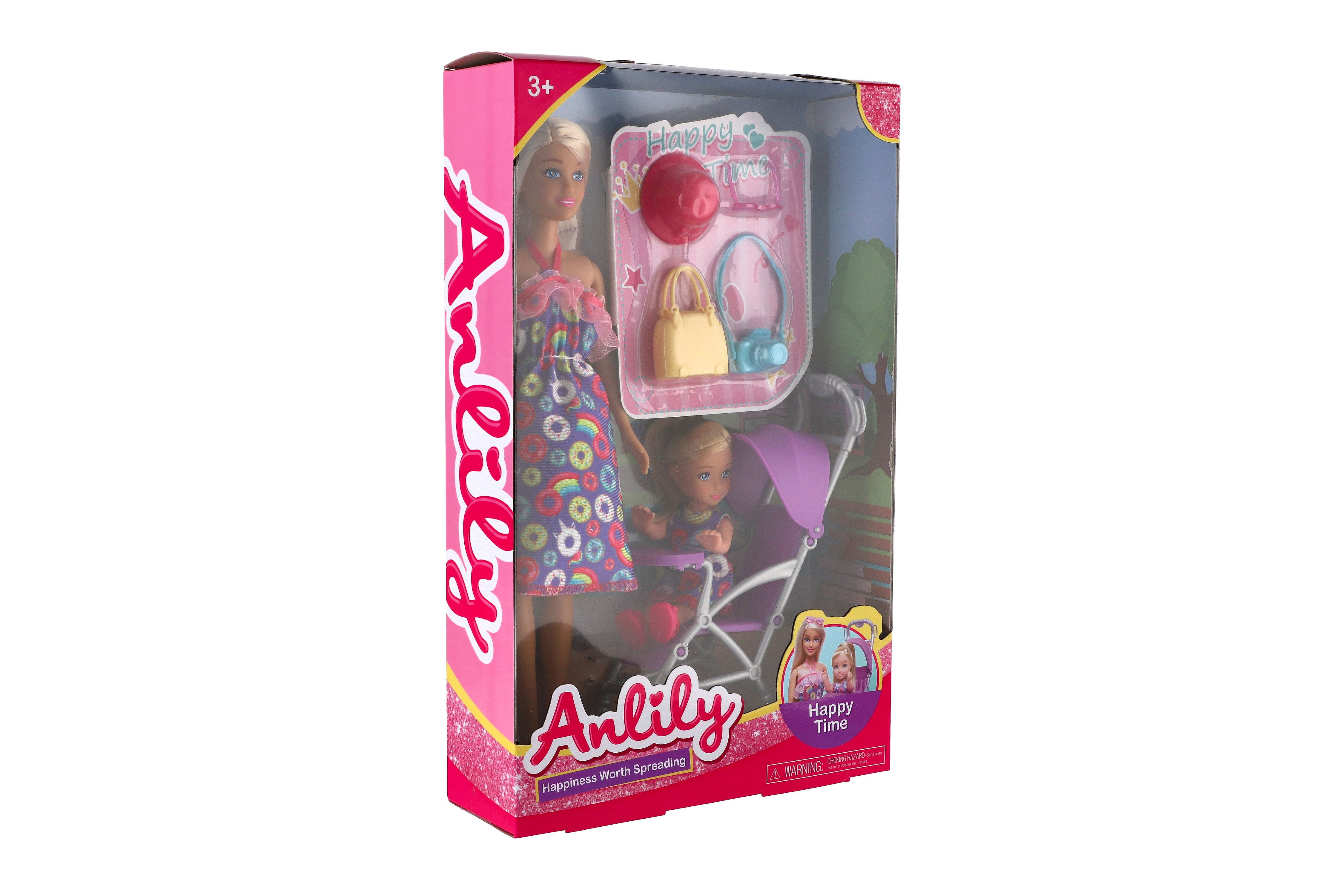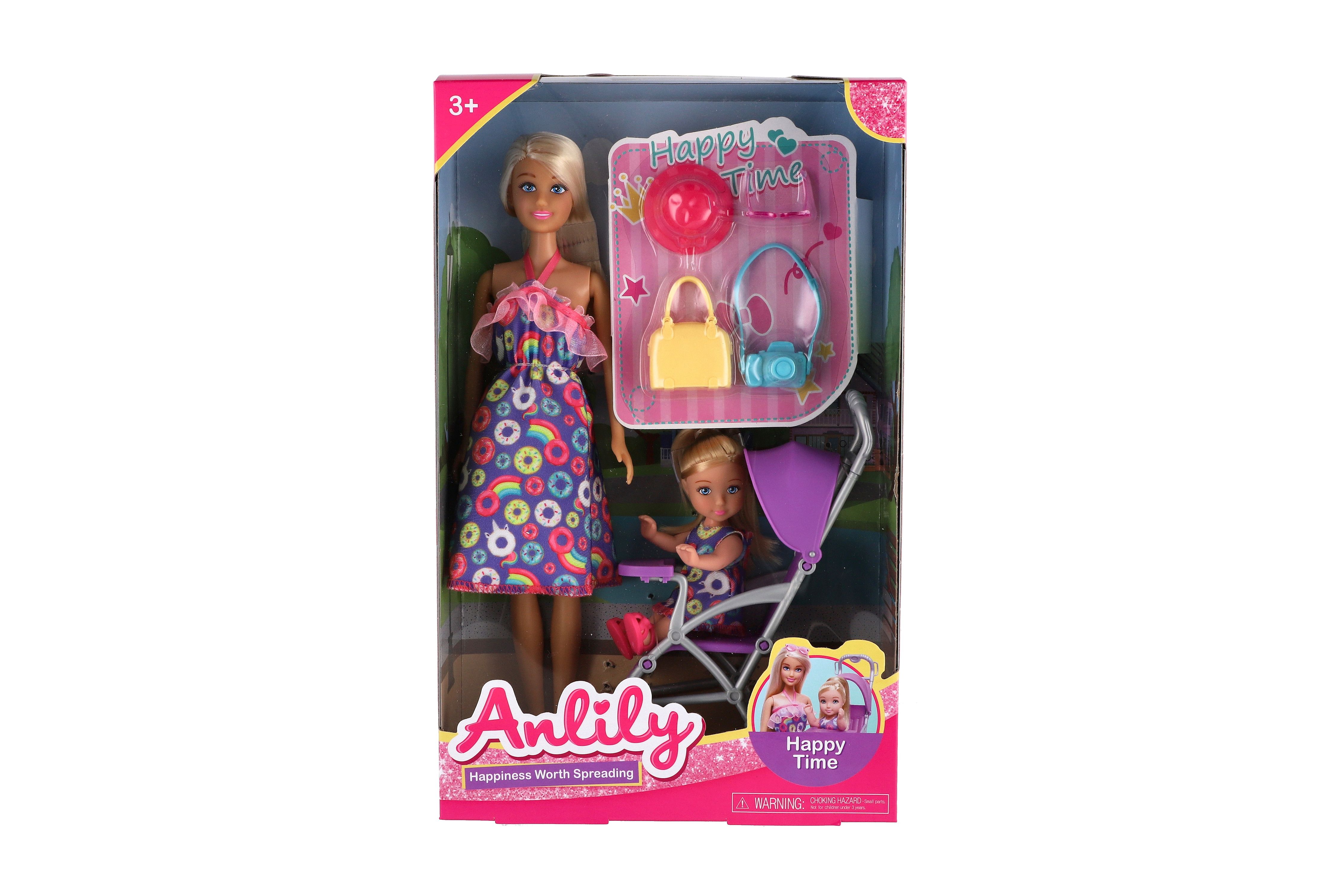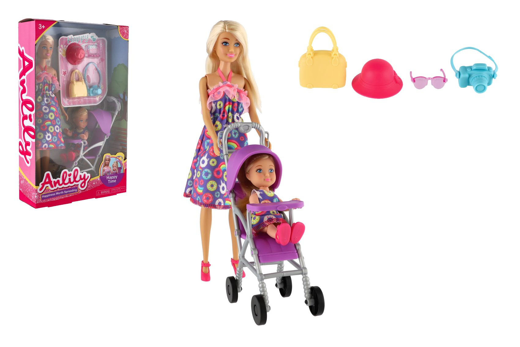 Panenka Anlily 30cm s holčičkou a kočárkem + doplňky plast v krabici 20x32x7cm