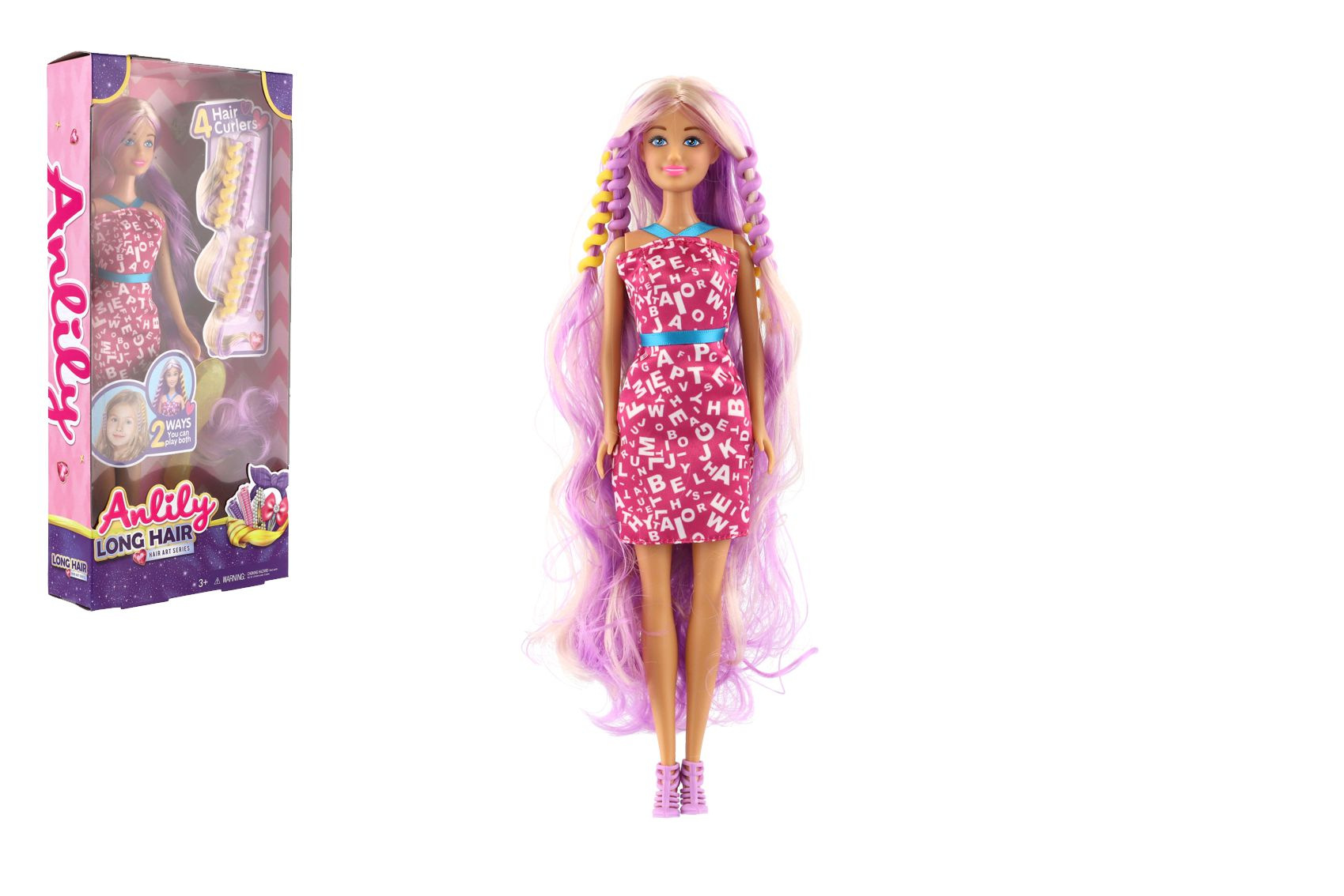 Panenka s hřebenem a natáčkami! Má krásné šaty, dlouhé česací vlasy. Vytvářej panence účesy, dle tvé nálady. Hraní s touto panenkou obohatí dětskou představivost a zlepšuje jemnou motoriku. Velikost panenky: 28 cm Rozměr balení: 15x32x5 cm Vhodné od 3 let