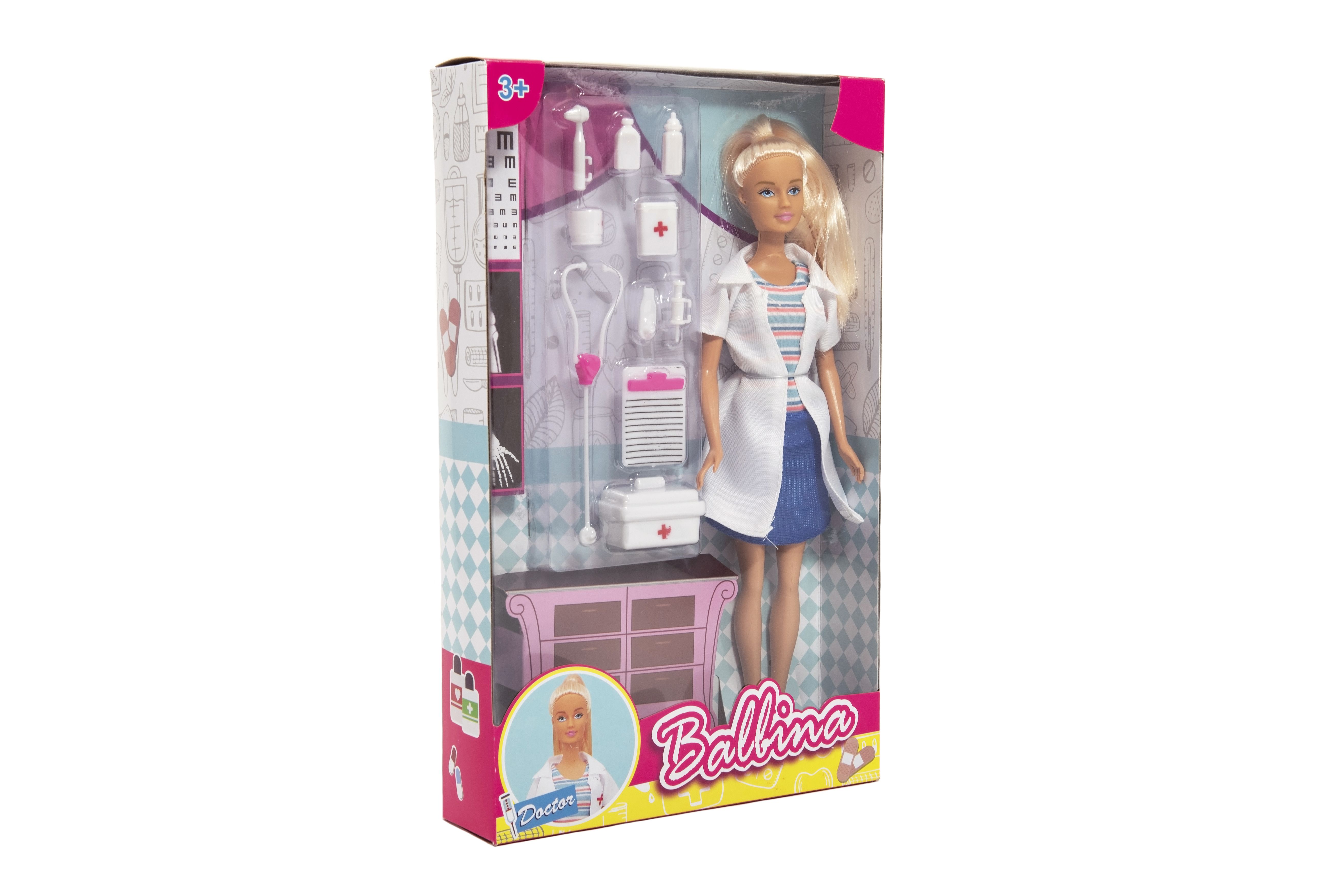 Prozkoumejte svět jako dětská doktorka ! Panenka doktorka s veškerým příslušenstvím určitě nadchne holky i kluky. Přesvědč své pacienty, že vyšetření v ordinaci ani v terénu nebolí a nemají se čeho bát! Rozměr krabice: 20 x 33 x 5 cm Vhodné pro děti od 3 let