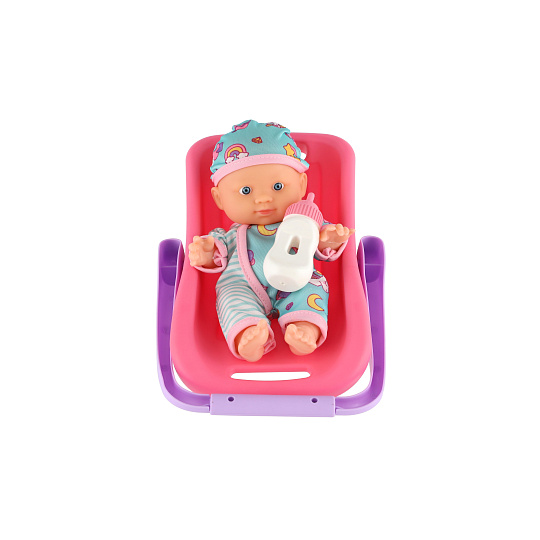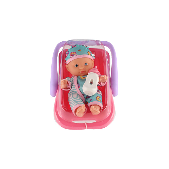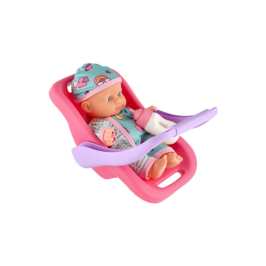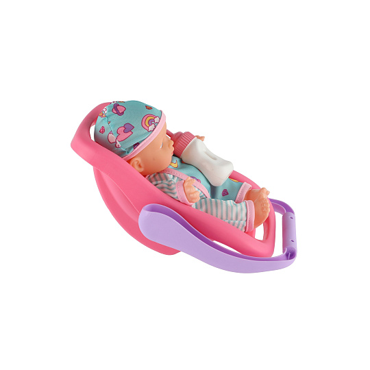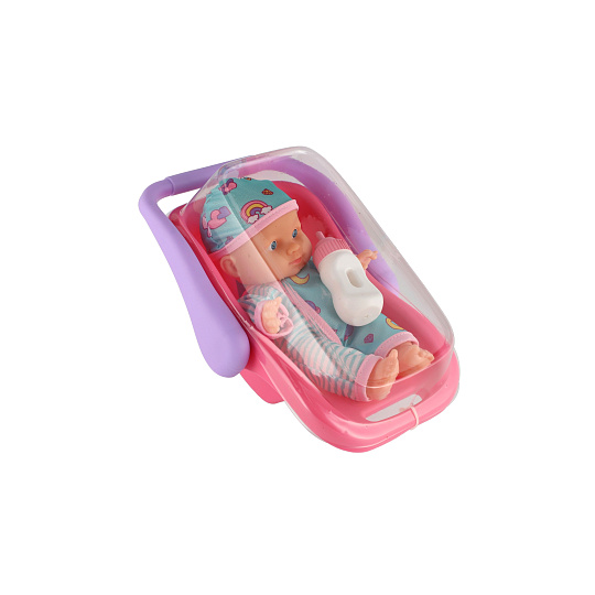 Panenka miminko 20 cm plast v nosítku/autosedačce s lahvičkou v blistru
