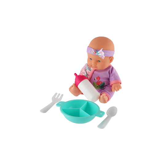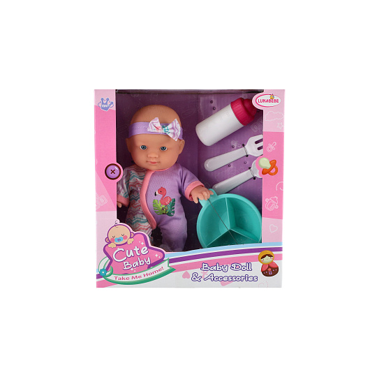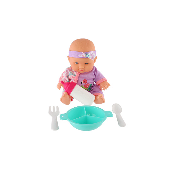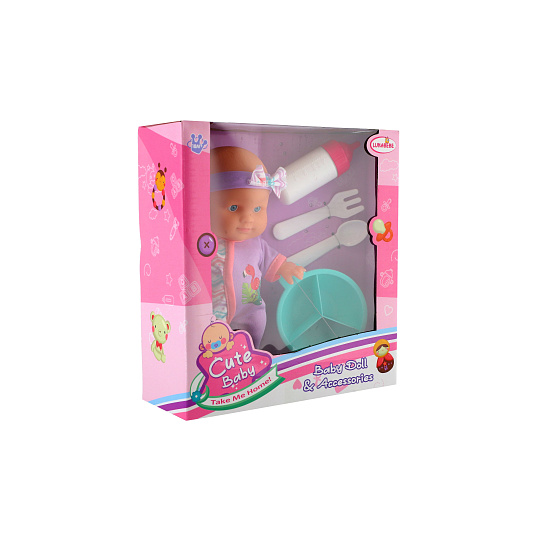 Roztomilá panenka s pevným telíčkem. Toto miminko udělá jistě radost každé holčičce a stane se tak její nepostradatelnou součástí. Součástí balení je jídelní set pro batolata, které určitě každá maminka pro své miminko nutně potřebuje. Velikost panenky: 20 cm Rozměr balení: 23 x 24 x 8 cm. Vhodné pro děti od 3 let.