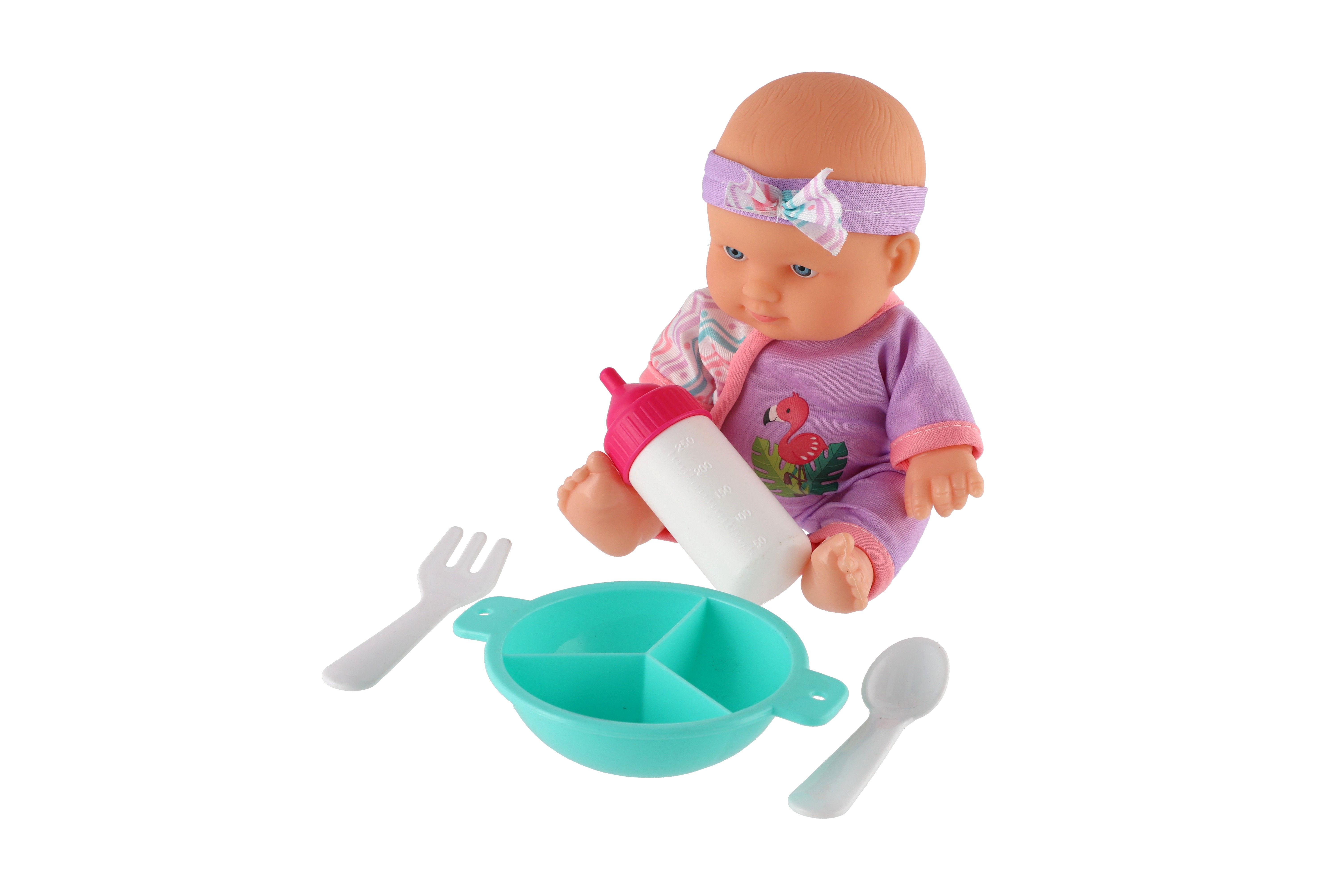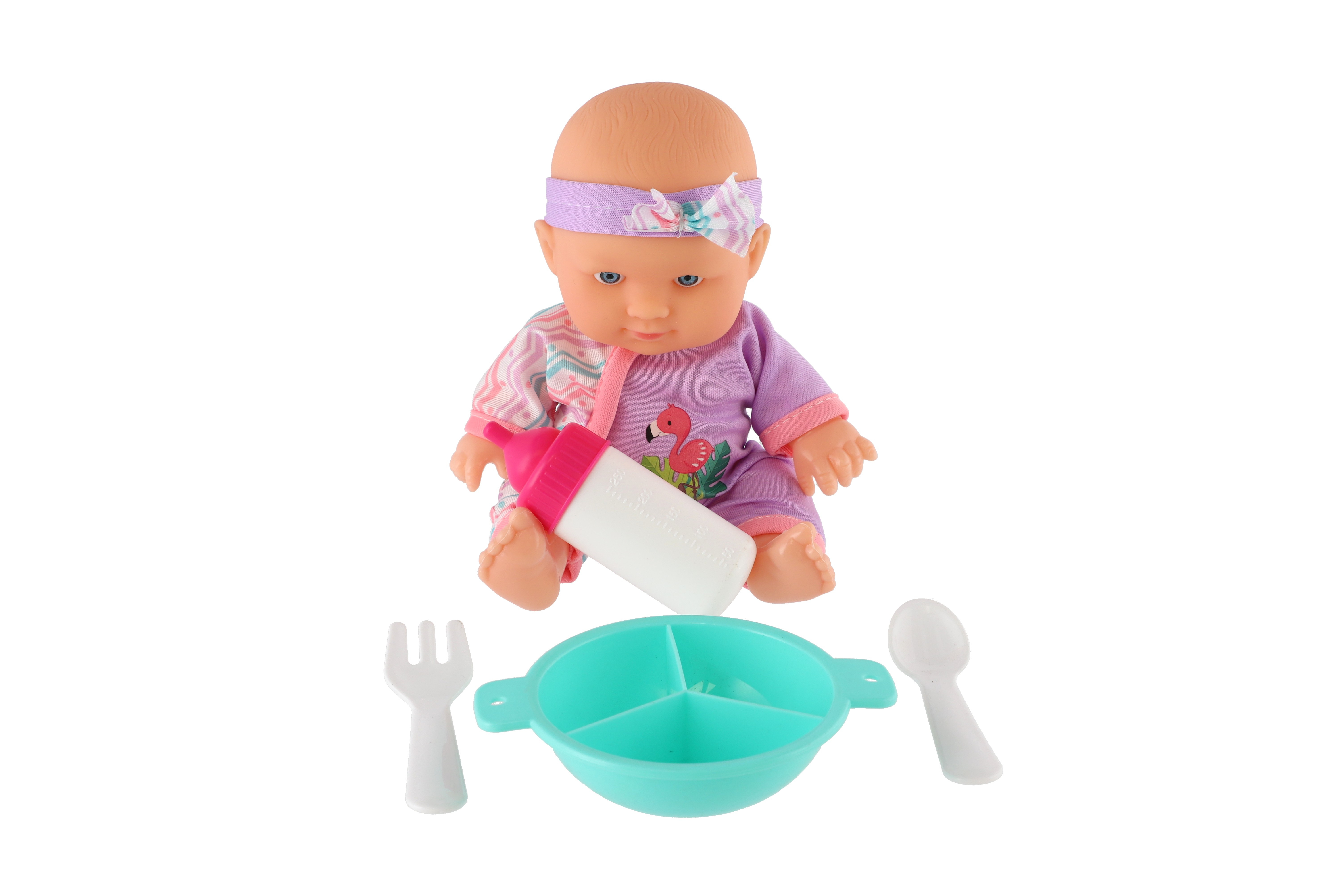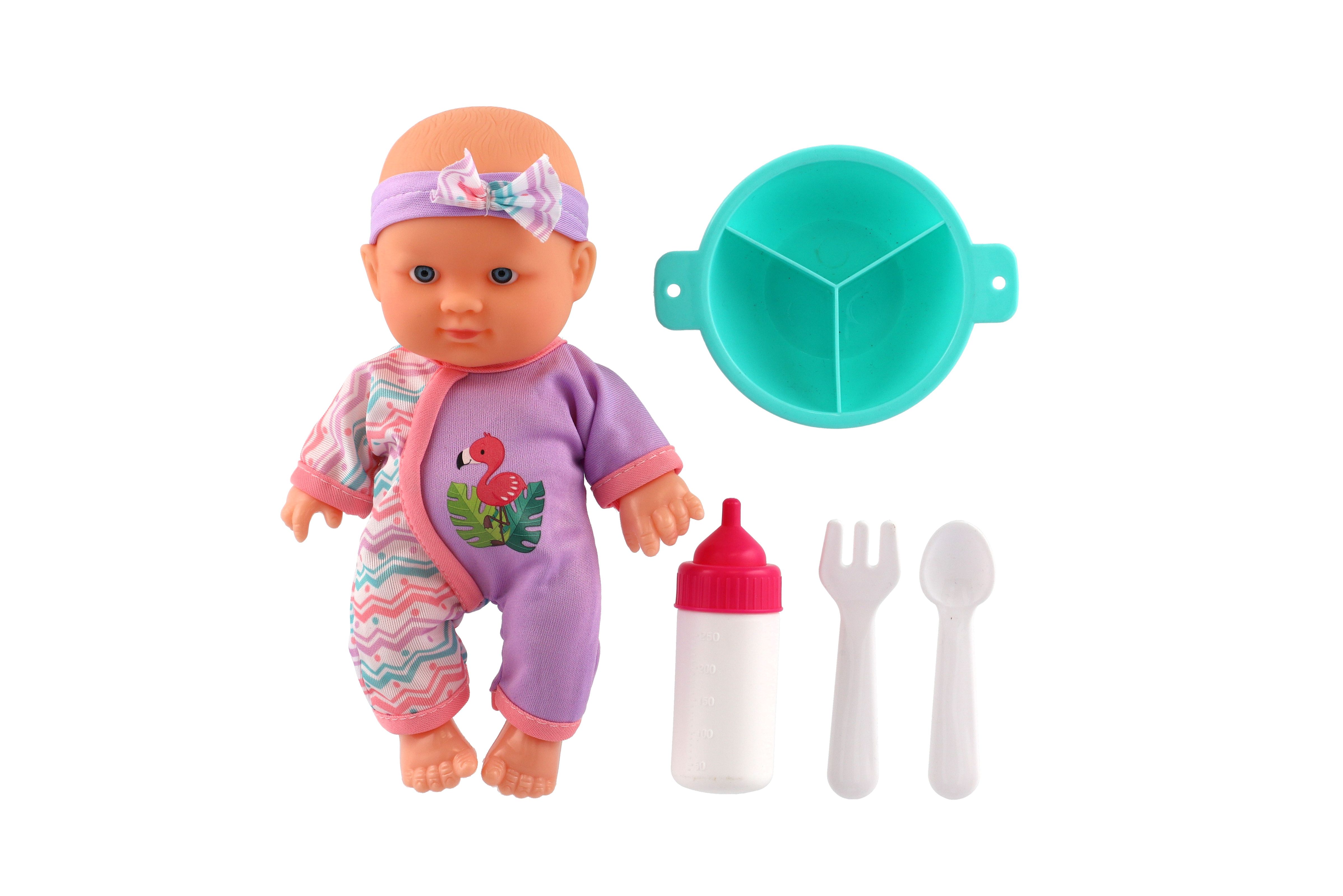 Roztomilá panenka s pevným telíčkem. Toto miminko udělá jistě radost každé holčičce a stane se tak její nepostradatelnou součástí. Součástí balení je jídelní set pro batolata, které určitě každá maminka pro své miminko nutně potřebuje. Velikost panenky: 20 cm Rozměr balení: 23 x 24 x 8 cm. Vhodné pro děti od 3 let.
