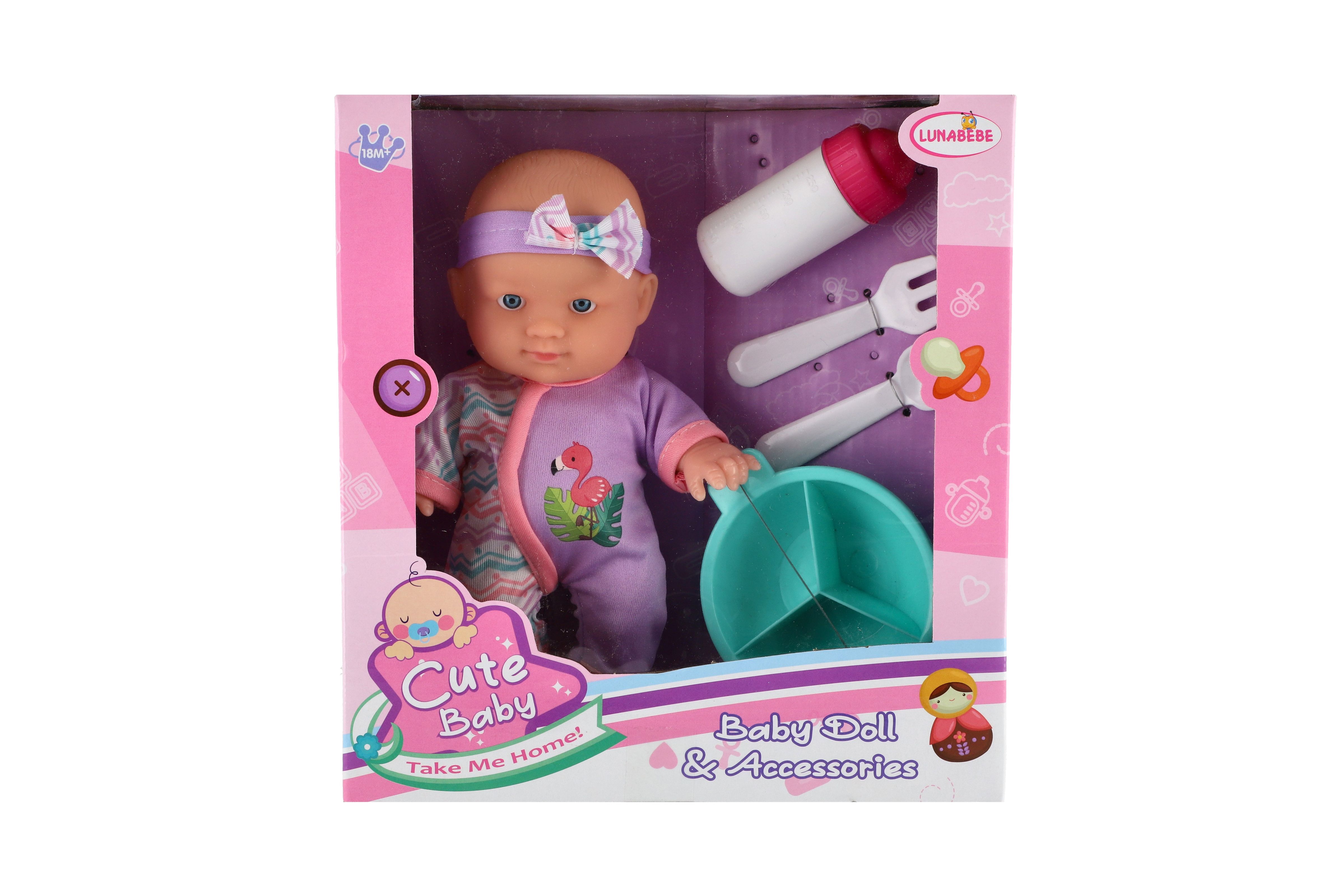 Panenka miminko 20cm pevné tělo s doplňky v krabici 23x24x8cm