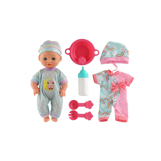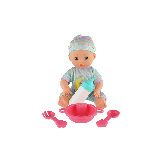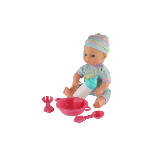 Roztomilá panenka s pevným telíčkem. Toto miminko udělá jistě radost každé holčičce a stane se tak její nepostradatelnou součástí. Součástí balení je jídelní set pro batolata, které určitě každá maminka pro své miminko nutně potřebuje. Velikost panenky: 25 cm Rozměr balení: 30 x 27 x 8 cm Vhodné pro děti od 3 let