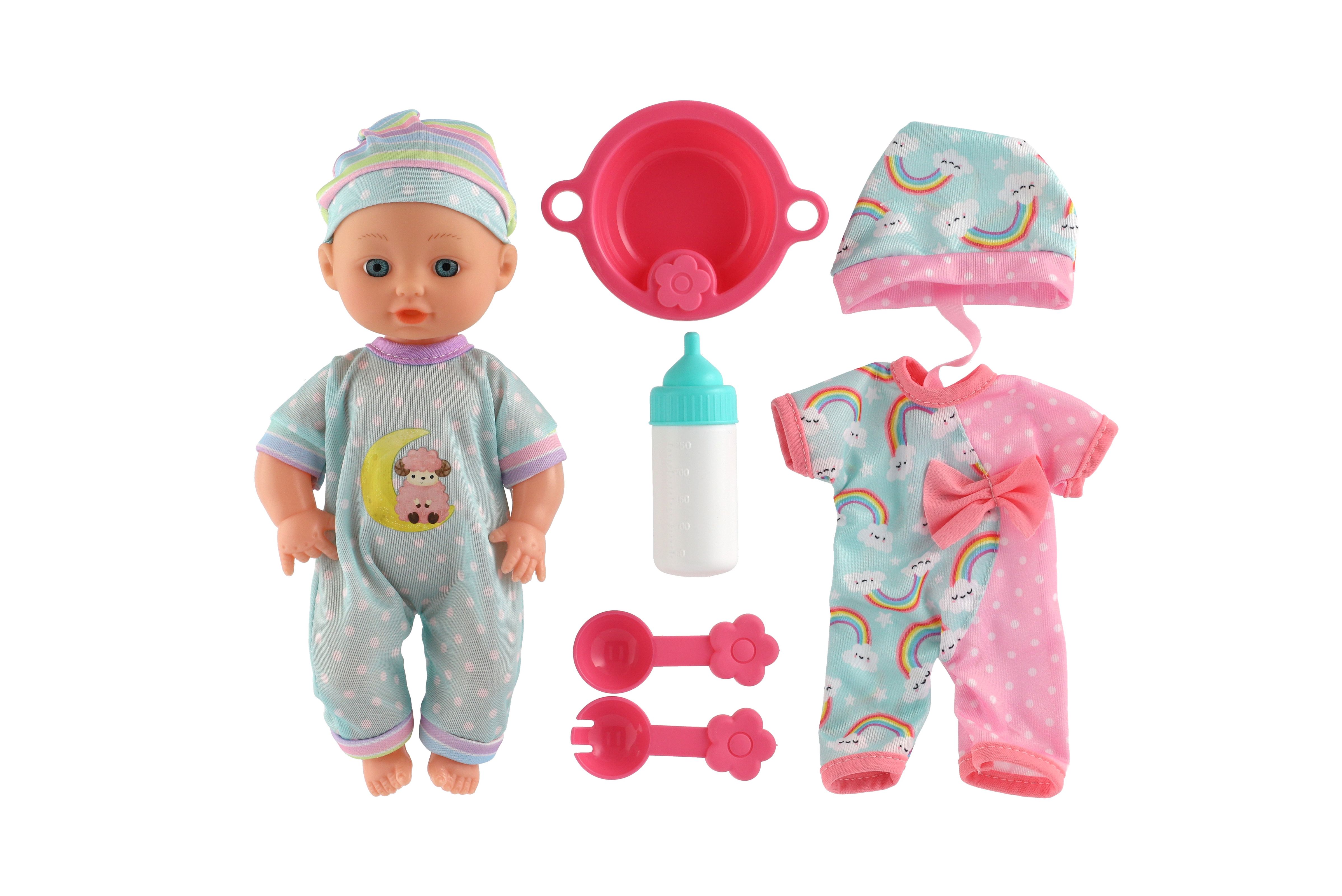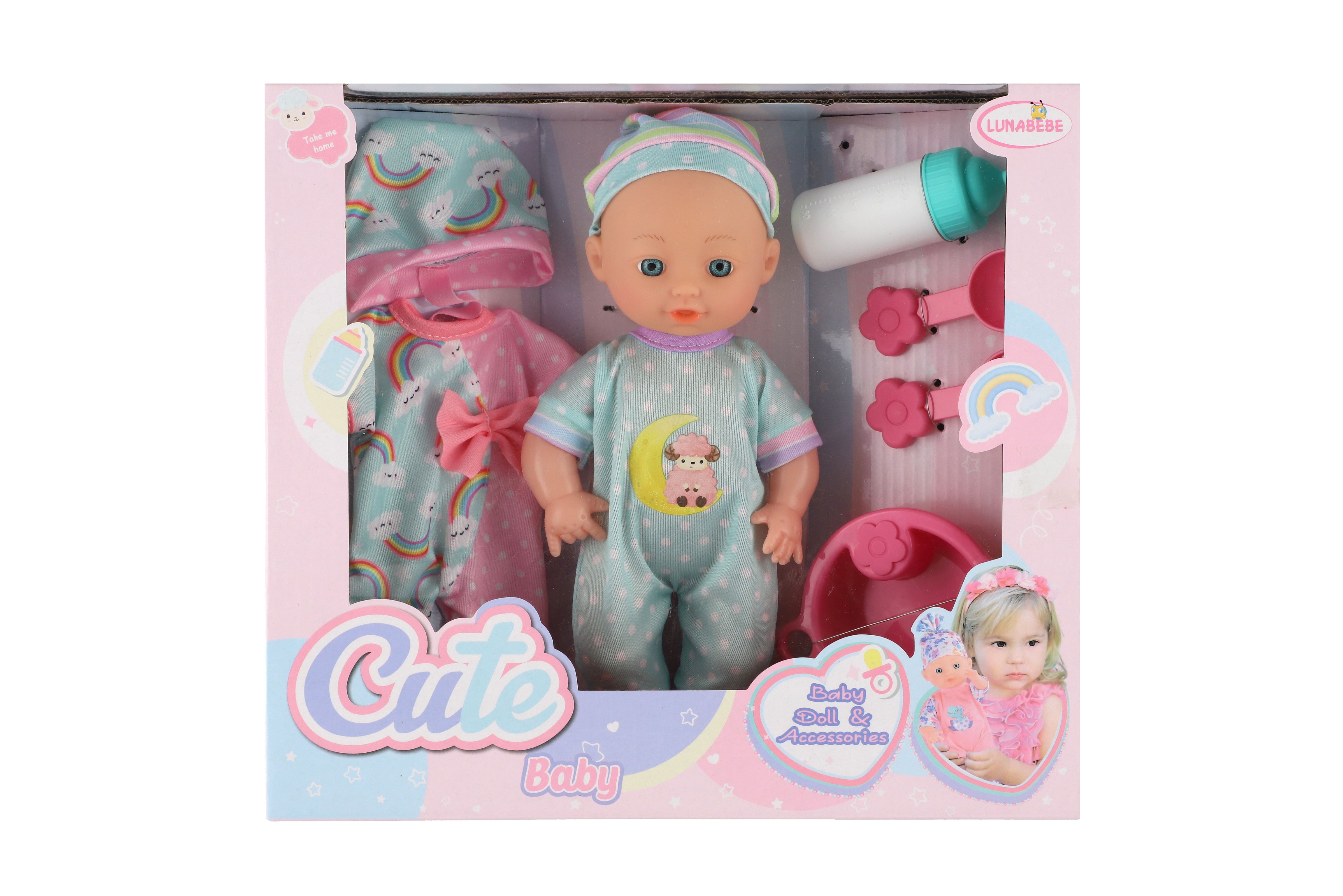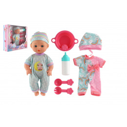 Panenka miminko 25cm pevné tělo s doplňky v krabici 30x27x8cm