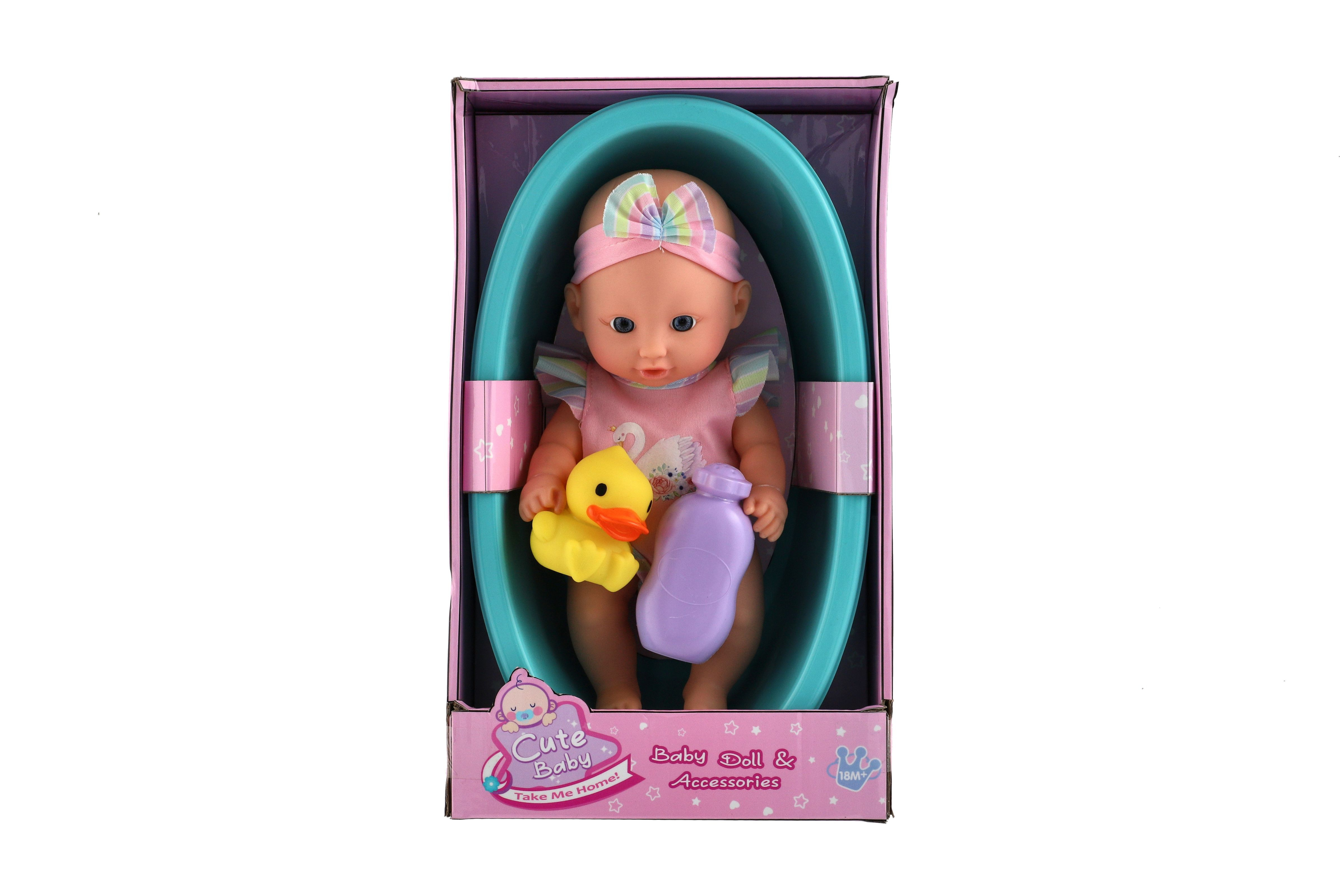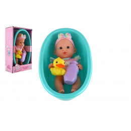 Panenka miminko 26cm pevné tělo plast s vaničkou s doplňky v krabici 20x33x10cm