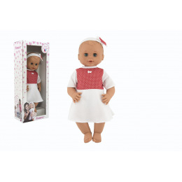 Panenka/Miminko Hamiro mrkací 50cm, pevné tělo, šaty bílé + červený puntík v krabici 24x60x15cm 0m+