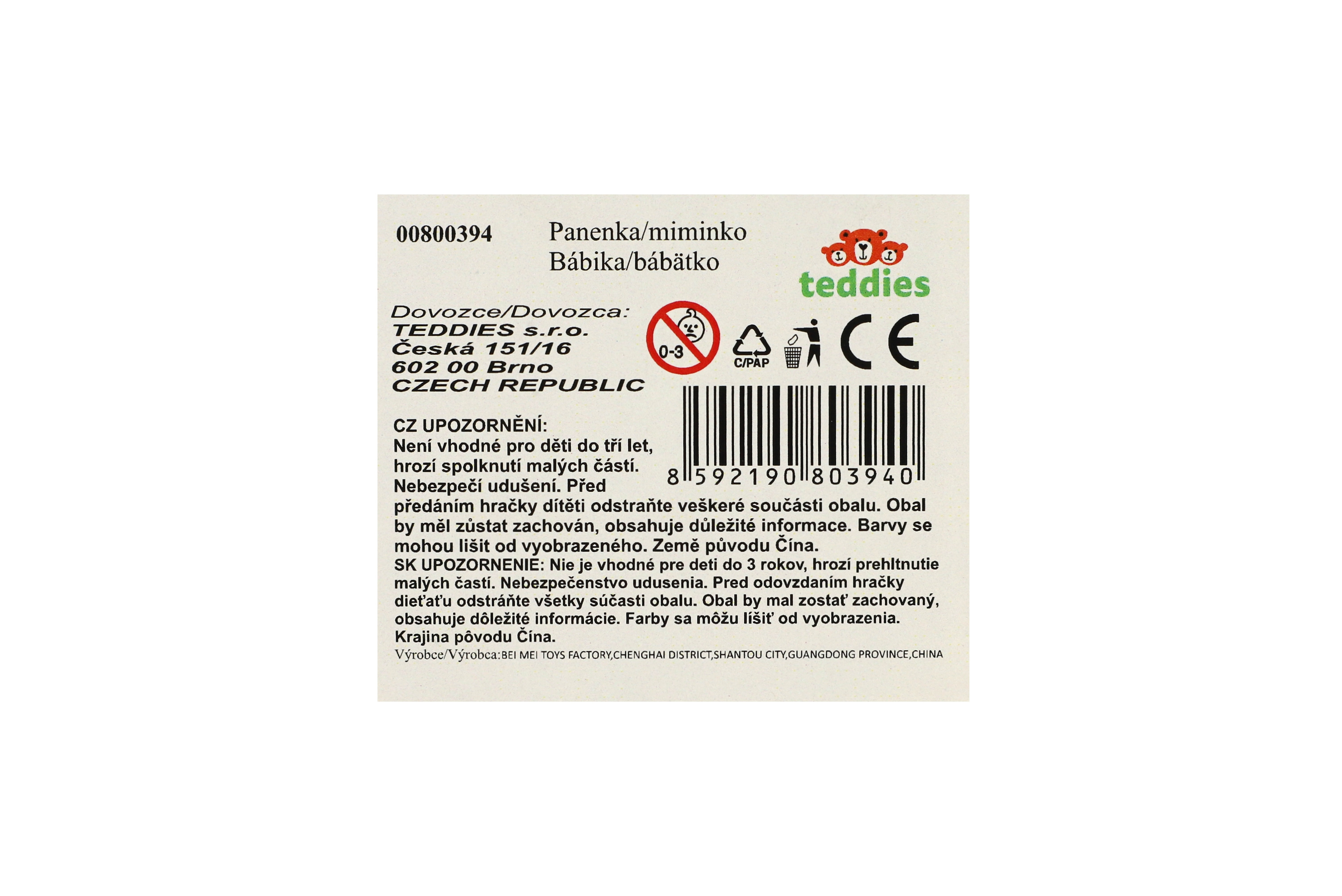 Teddies Panenka/miminko měkké tělo plast 20cm mix druhů
