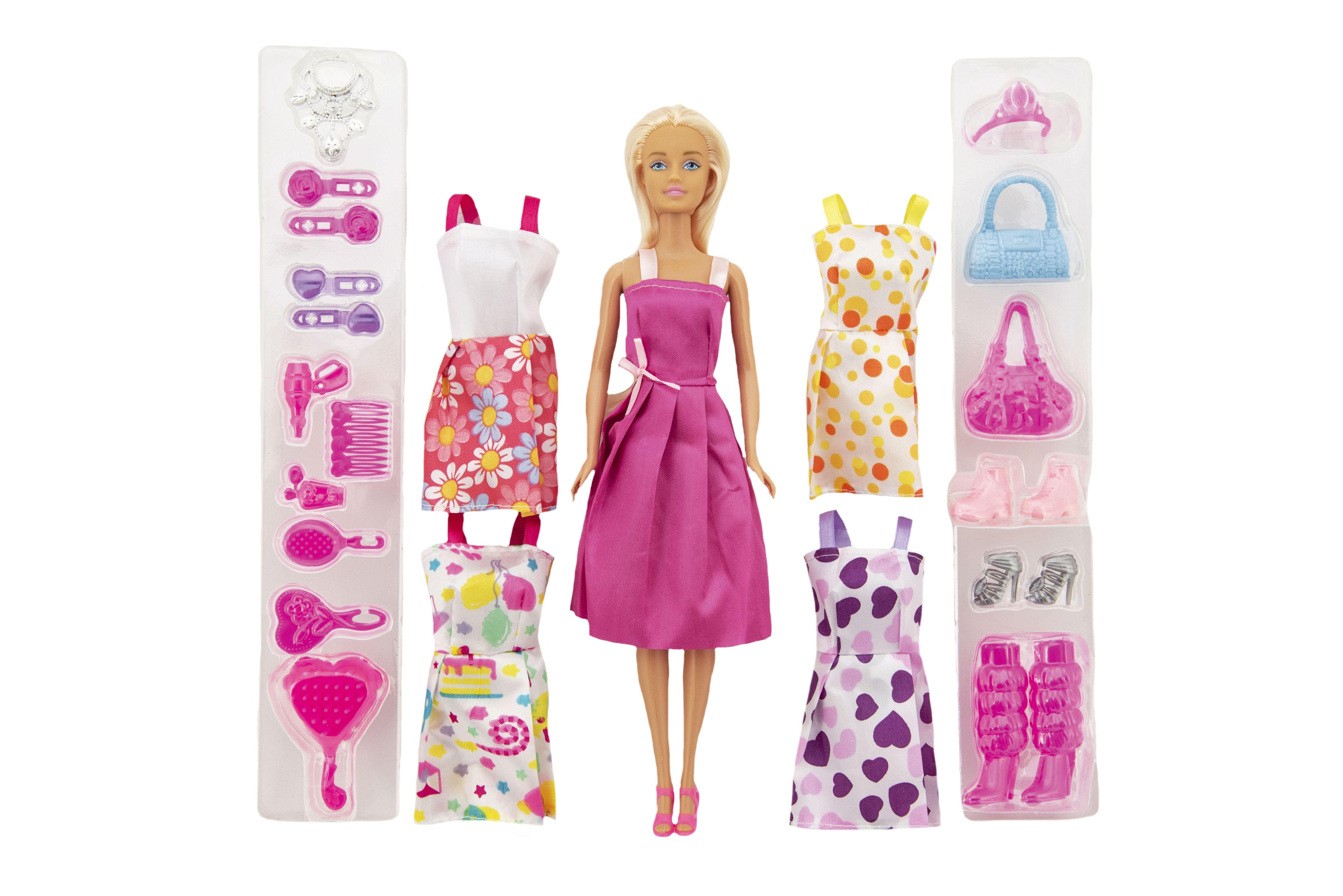 Panenka s šaty na převlékání a doplňky pro všechny milovnice módy. Panenku můžete učesat a převlékat dle vlastní fantazie. Součástí balení je spoustu doplňků jako šaty, doplňky, kabelky a panenka může na molo. Sada obsahuje více než 25 doplňků. Rozměry balení 32 x 32 x 6 cm Vhodné pro děti od 3 let