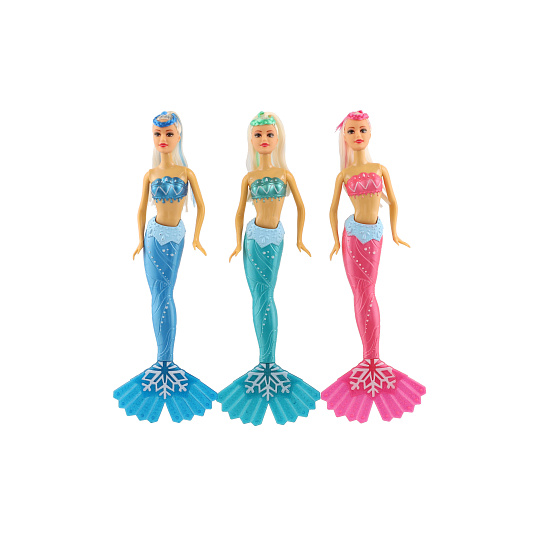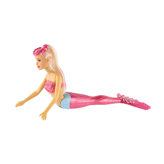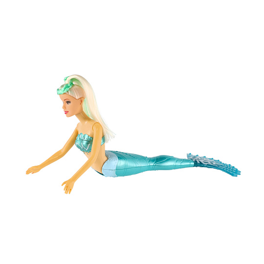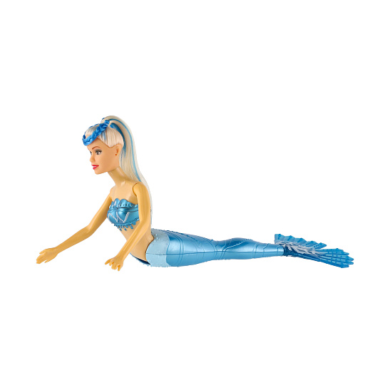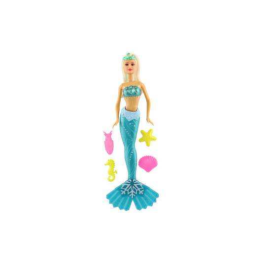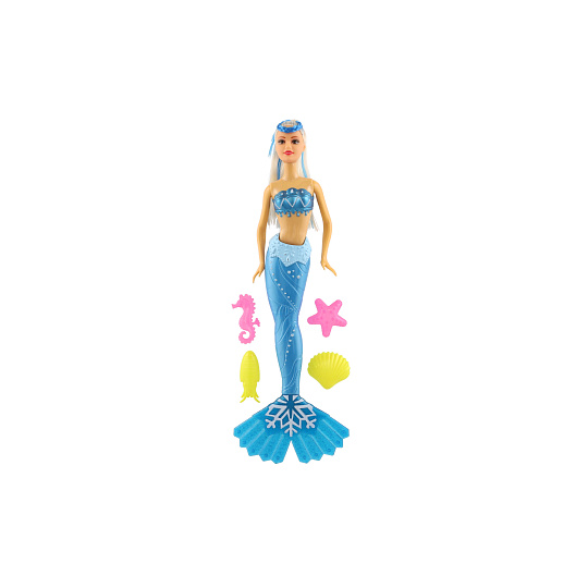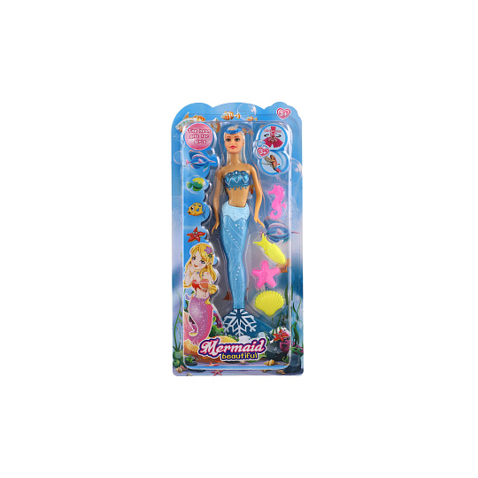 Plastová panenka mořská panna. Užij si dobrodružství na dně oceánu s mořskou pannou! Učeš panence její dlouhé vlasy ať okouzlí celý podmořský svět! V balení i 4 doplňky, ploutev je otočná o 360 °C. Rozměr balení: 34 cm Vhodné pro děti od 3 let
