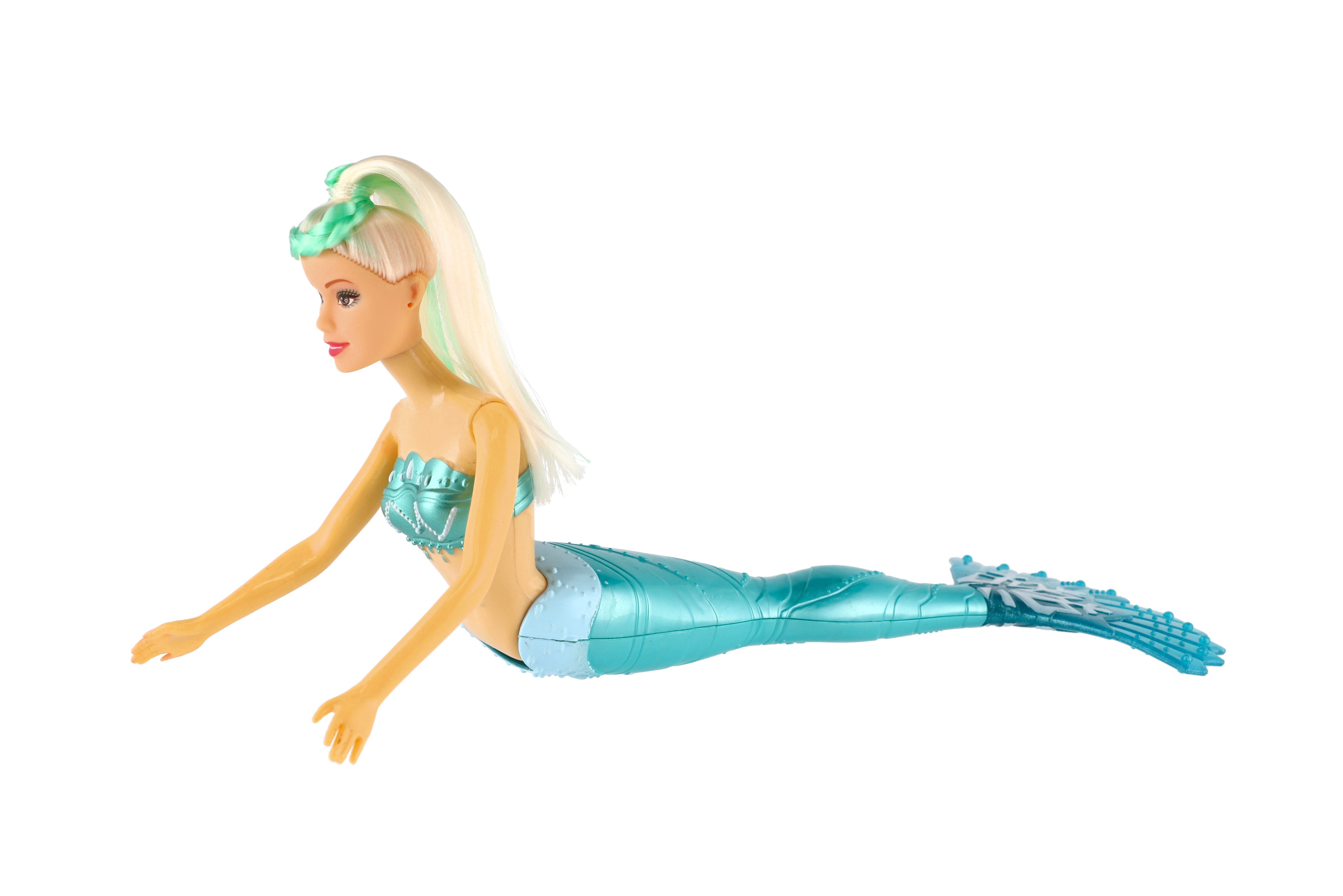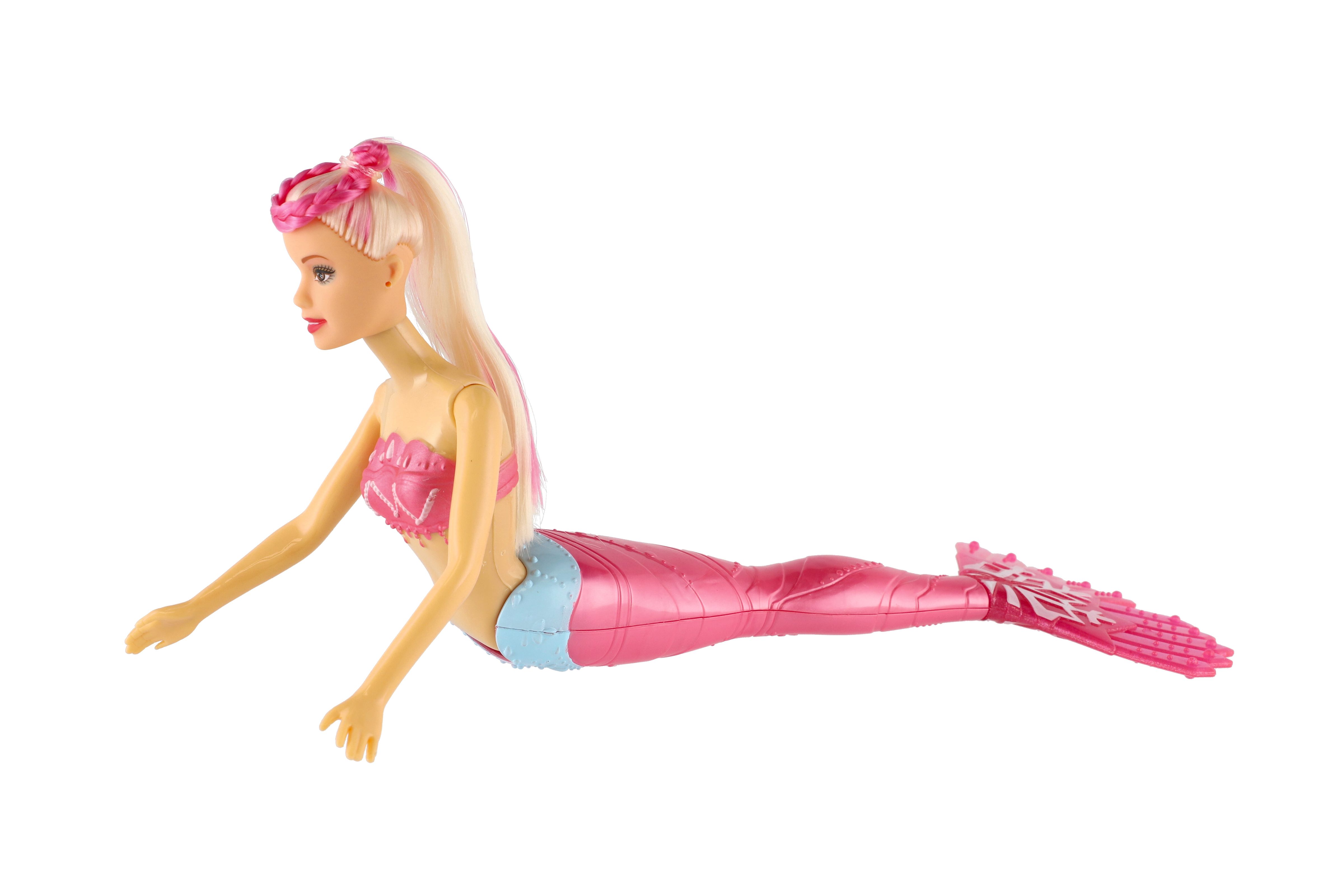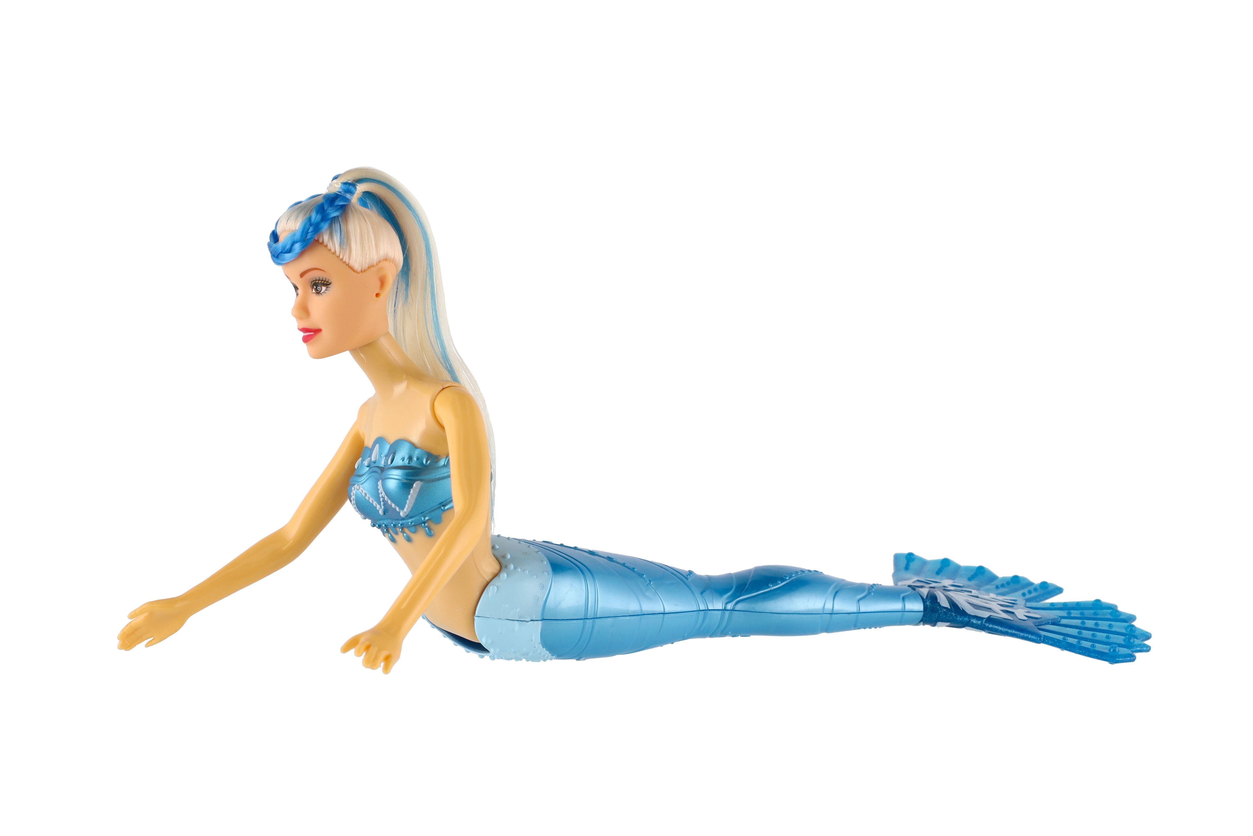 Plastová panenka mořská panna. Užij si dobrodružství na dně oceánu s mořskou pannou! Učeš panence její dlouhé vlasy ať okouzlí celý podmořský svět! V balení i 4 doplňky, ploutev je otočná o 360 °C. Rozměr balení: 34 cm Vhodné pro děti od 3 let
