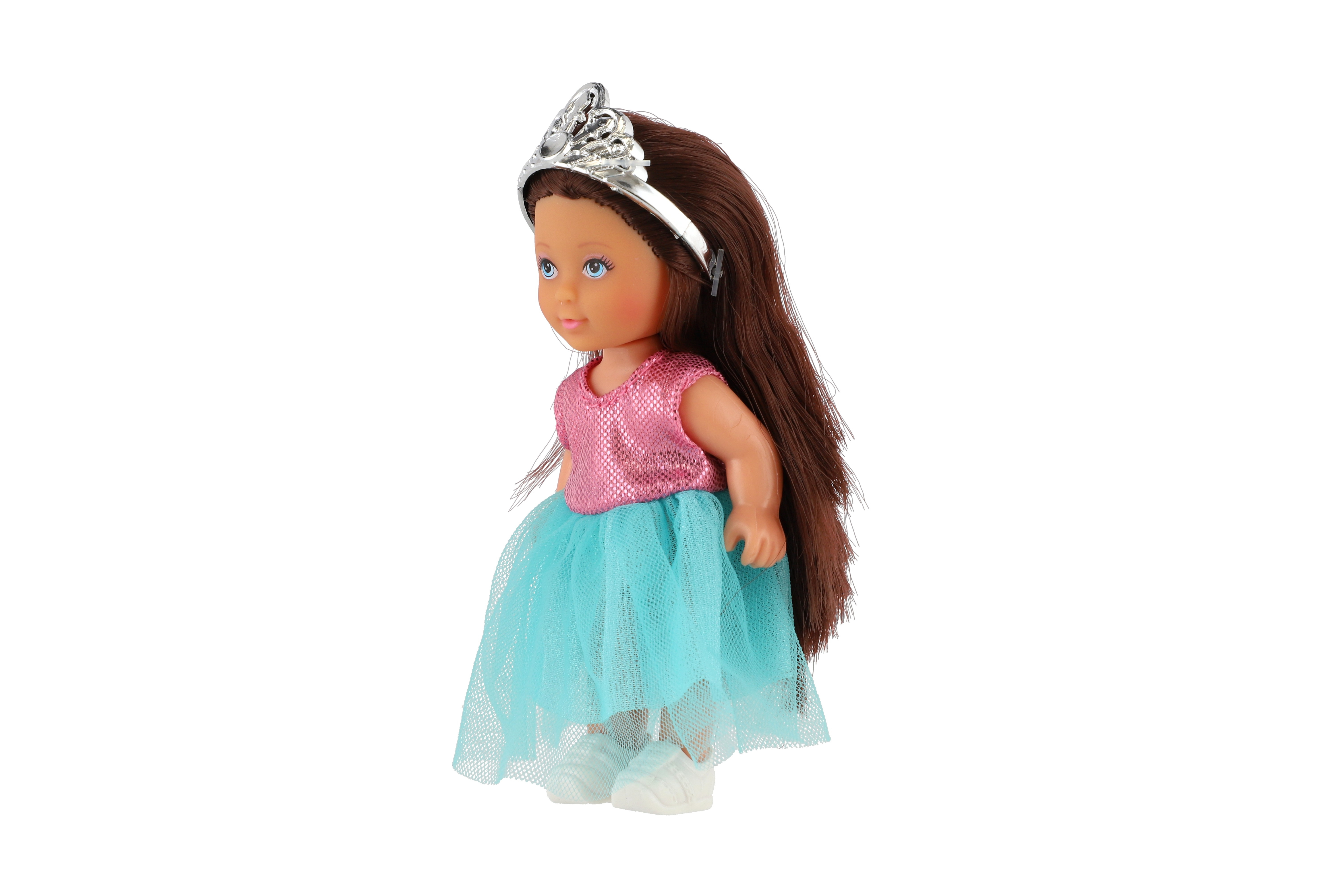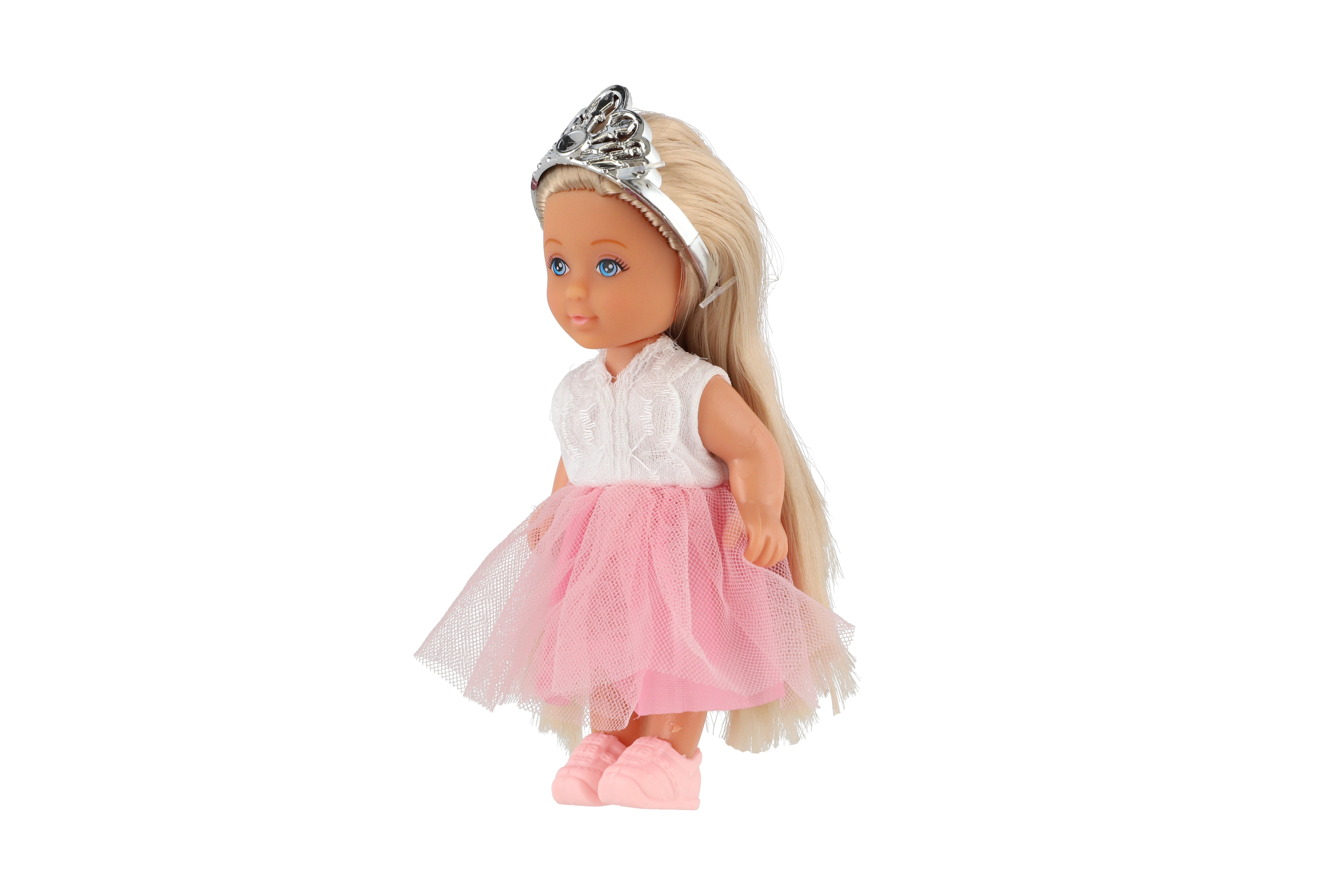 Elegantní panenka s korunkou a dlouhými vlasy, která svým půvabem a krásným vzhledem potěší každou holčičku. Díky své velikosti bude skvělou kamarádkou pro vaše holčičky. Díky pohyblivým částem a krásnému designu panenka inspiruje děti k tvořivé hře, rozvíjí jejich představivost a sociální dovednosti. Rozměry balení 7 x 15 x 5 cm. Vhodné pro děti od 3 let.