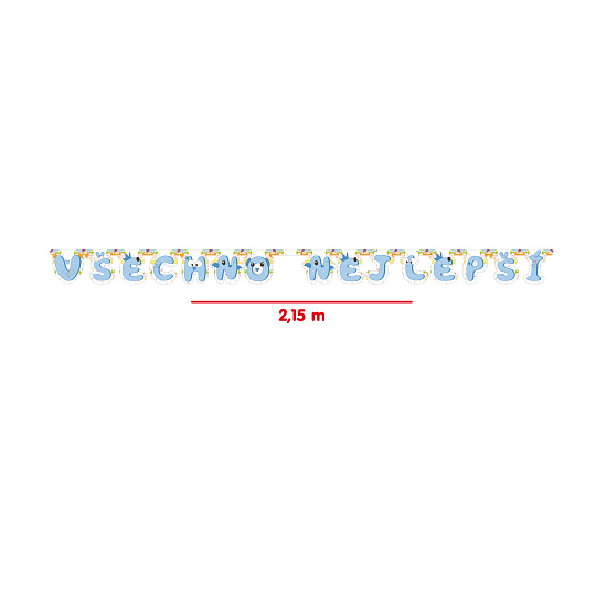 Super tip na oslavu - girlanda Všechno nejlepší v modrém provedení! Stačí roztáhnout a pověsit. Díky této veselé girlandě bude tvoje výzdoba na párty nepřehlédnutelná. Délka cca 215 cm.