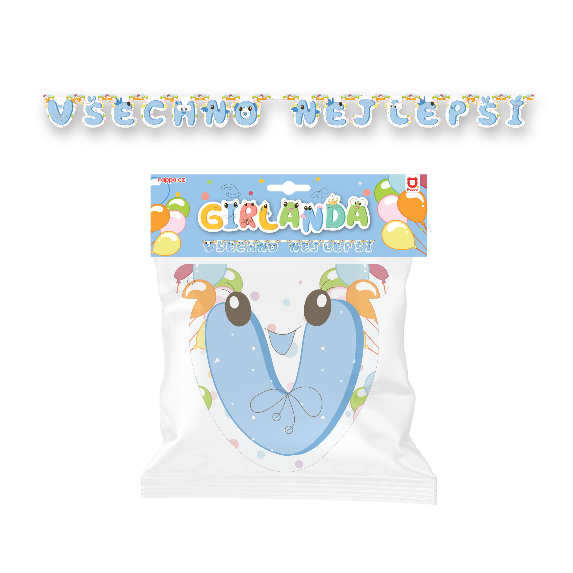 Rappa Papírová girlanda Všechno nejlepší - modrá