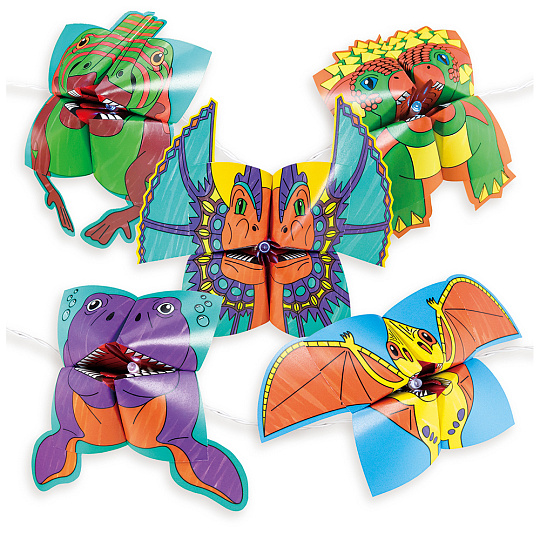 Řetěž rozjasní pokoj každého fanouška dinosaurů! Vybarvěte listy papíru z dinosauřích origami a podle pokynů krok za krokem je poskládejte. Poté přidejte samolepky, části těla a pomocí sponek je připevněte ke světlům pro prehistorickou světelnou show!
