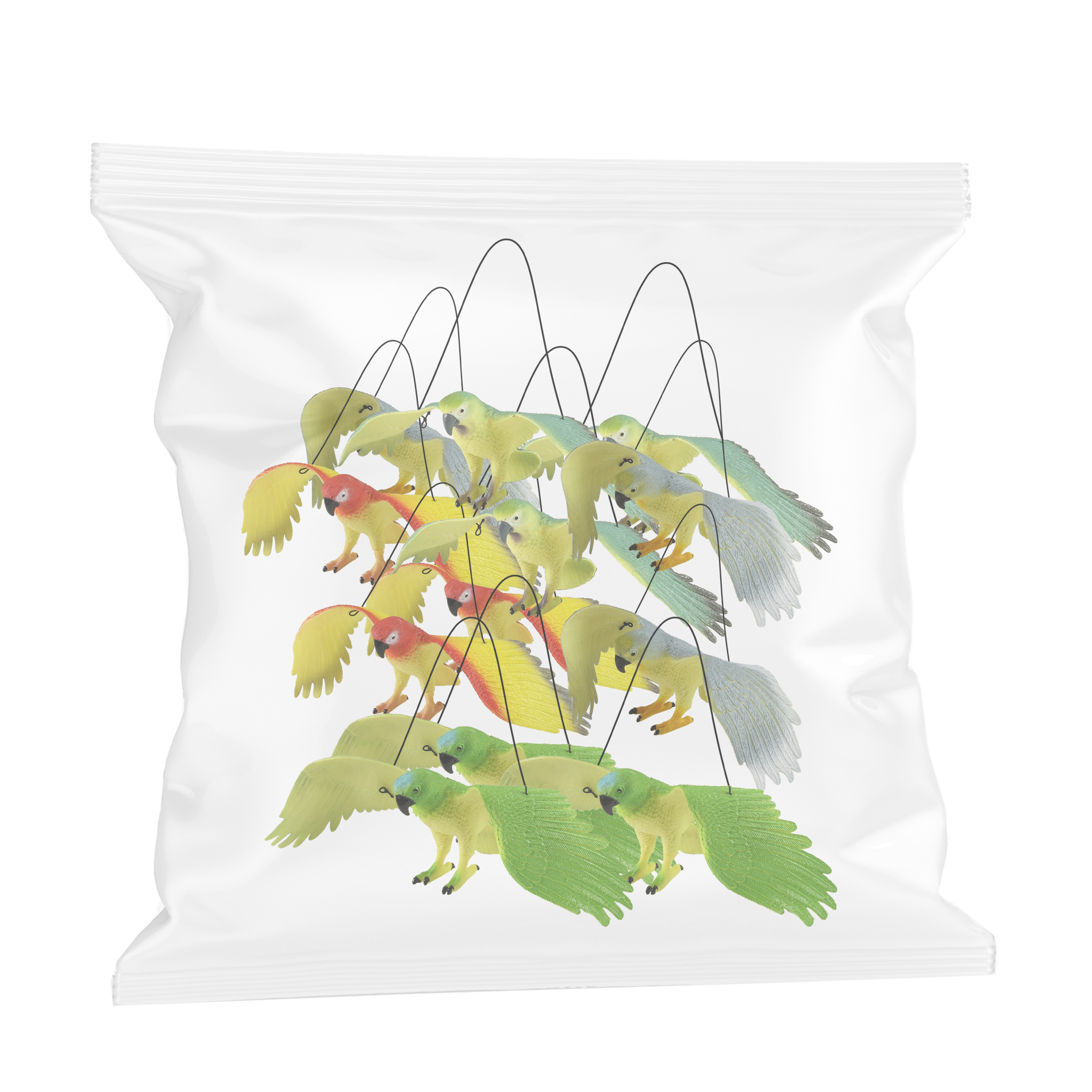 Vyber si svého papouška! Tito krásně zbarvení letci na gumičce nesmí ve tvé zvířecí sbírce chybět! Zmáčknutím zvířátka, vydává zvuk (píská). Papoušky prodáváme pouze v celém balení po 12 ks. Výška papouška cca 12 cm, rozpětí křídel cca 30 cm. Uvedena cena je za 1ks.