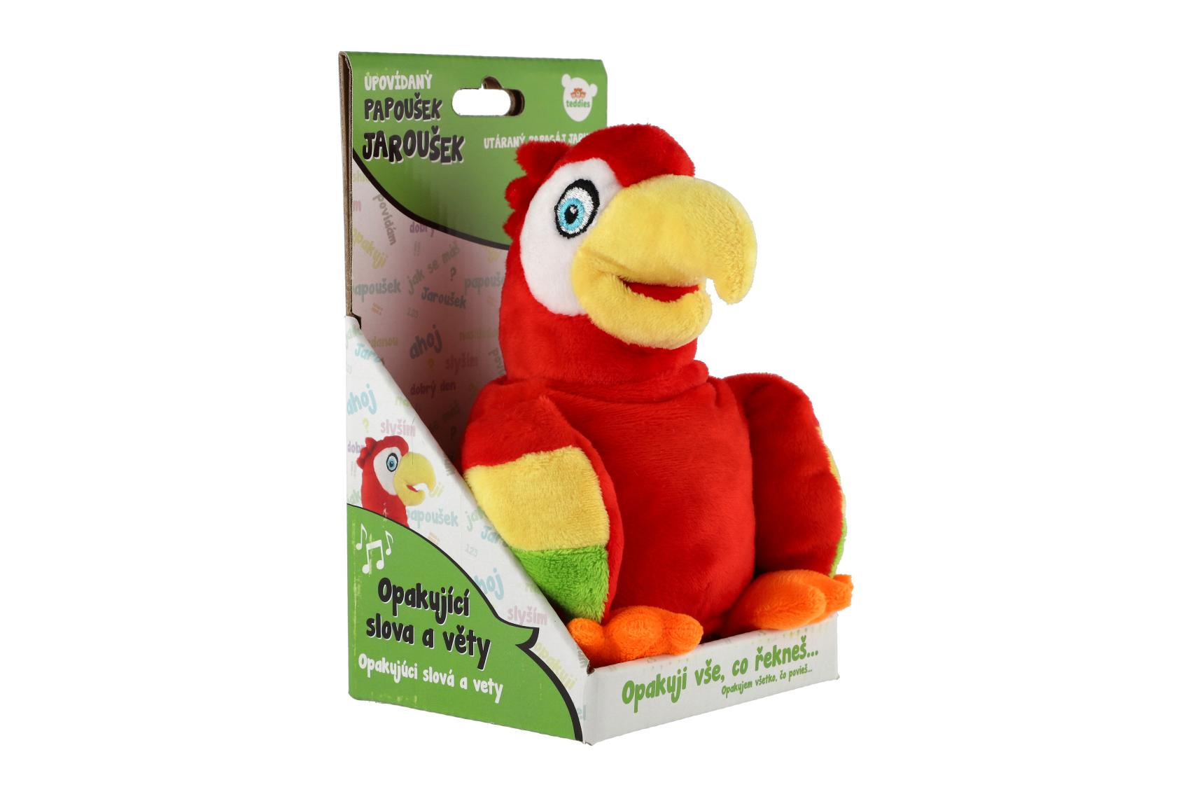 Rozkošný papoušek Jaroušek nadchne celou rodinu a zároveň si s ním užijete mnoho zábavy! Papoušek Jaroušek totiž umí mluvit - stačí na Jarouška promluvit a on legračně opakuje vše co uslyší svým pozměněným hlasem a bude u toho také roztomile přikyvovat hlavou. Papouška Jarouška si tak určitě zamilujete a stane se důležitou částí Vaší rodiny! Hračka je na baterie 3x AAA, které jsou součástí balení. Velikost hračky: 16 cm Rozměr krabičky: 12 x 20 x 10 cm Vhodné pro děti od 3 let